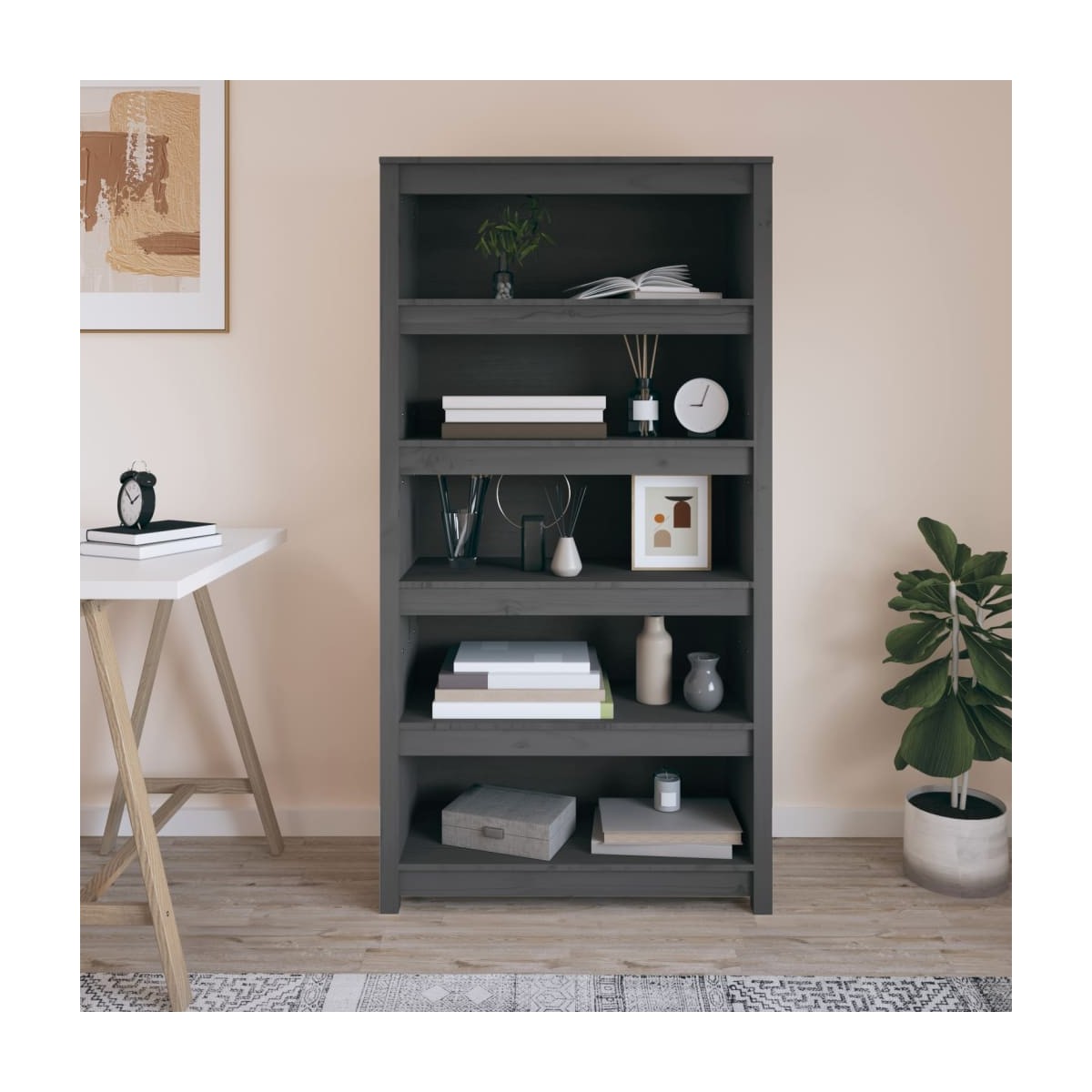 Esta clásica estantería de madera para libros tiene un diseño elegante y moderno, por lo que es un atractivo y práctico complemento para la decoración de la casa. Material resistente: La madera maciza de pino es un bonito material natural. La madera de pino tiene vetas rectas, y los nudos dan al material su distintivo aspecto rústico.Amplio espacio de almacenamiento: El armario para libros cuenta con amplios estantes, que proporcionan un gran espacio de almacenaje para mantener revistas, libros, DVD y tus objetos decorativos favoritos bien organizados y al alcance.Múltiples usos: Como estantería versátil, la librería de madera es una solución de almacenamiento perfecta para el dormitorio, el estudio, la oficina, el pasillo y cualquier otra estancia. Advertencia:Para evitar el vuelco, este producto debe usarse con el dispositivo provisto para fijarlo a la pared. Nota:Cada producto viene con un manual de montaje en la caja para facilitar el montaje.