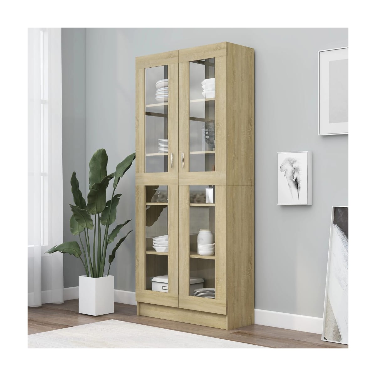 Este armario vitrina, con un diseño elegante y clásico, está destinado a ser un aporte decorativo y práctico para la decoración de tu casa. El armario para libros está hecho de madera contrachapada de calidad, lo que garantiza su robustez y durabilidad. Diseñada con 5 compartimentos espaciosos y 2 puertas, la estantería ofrece un amplio espacio de almacenamiento para mantener tus revistas, libros, DVD, dispositivos multimedia y otros elementos decorativos bien organizados y al alcance. Como estante versátil, es también es una solución de almacenamiento perfecta para cualquier estancia. Además, este soporte para libros es fácil de limpiar con un paño húmedo.