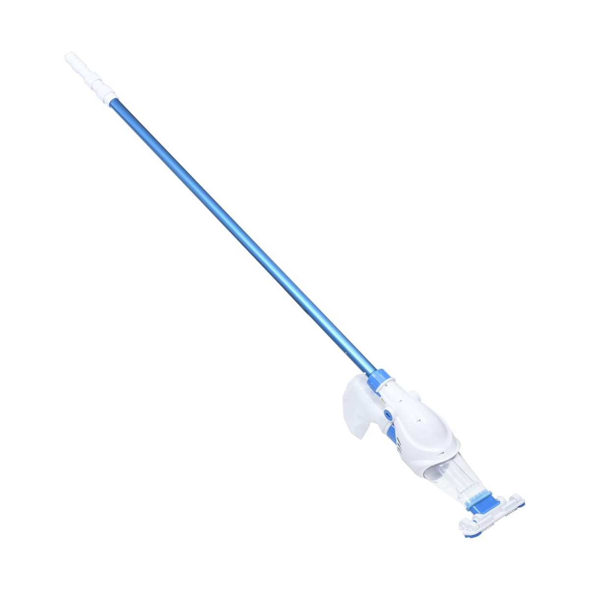 La aspiradora manual para piscinas es ideal para limpiar piscinas de paredes blandas, piscinas elevadas y enterradas con sistemas de filtración de bajo flujo. Esta aspiradora de mano elimina fácilmente los desechos y la arena del fondo de tu piscina sin obstruirla. El conjunto de aspiradora contiene un poste ligero de aluminio que se une para crear un poste de 3,6 m de largo. El aspirador incluye un tanque de recogida extraíble y un filtro incorporado para capturar las partículas pequeñas, y funciona con una batería de litio recargable con una tensión de 11,1 V. Por lo tanto, no necesita cable y es fácil de usar. Esta aspiradora es ideal para limpiar piscinas. Las 2 boquillas de conversión intercambiables se conectan al poste. Una tiene un cepillo para combatir la suciedad persistente y la otra tiene un cabezal de aspiración estándar para la piscina para aspirar los desechos sueltos. ¡Por lo tanto, obtienes 2 aspiradoras de piscina en 1 de forma eficaz! ¡Con nuestra aspiradora, pasarás menos tiempo limpiando tu piscina desmontable! Es fácil de montar.