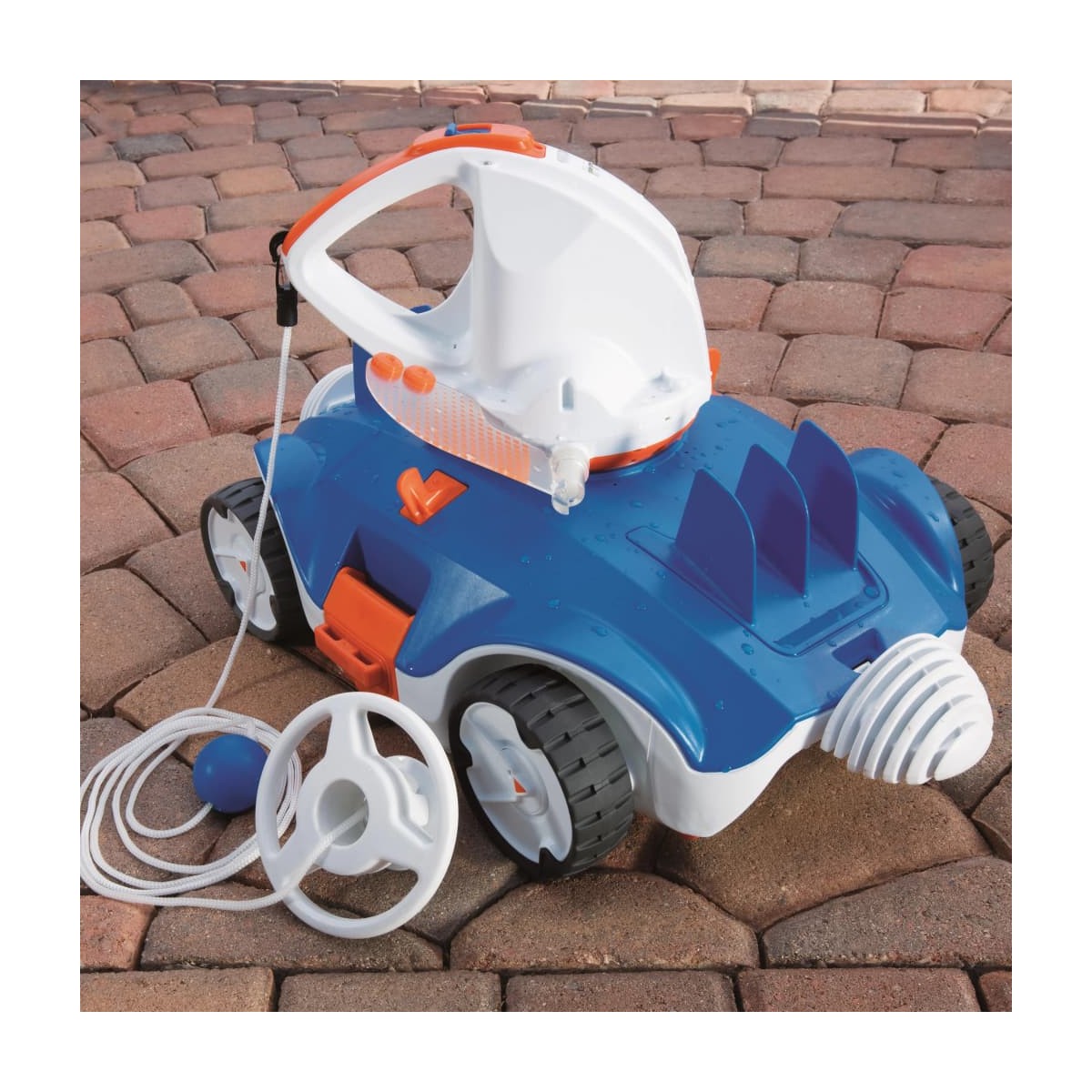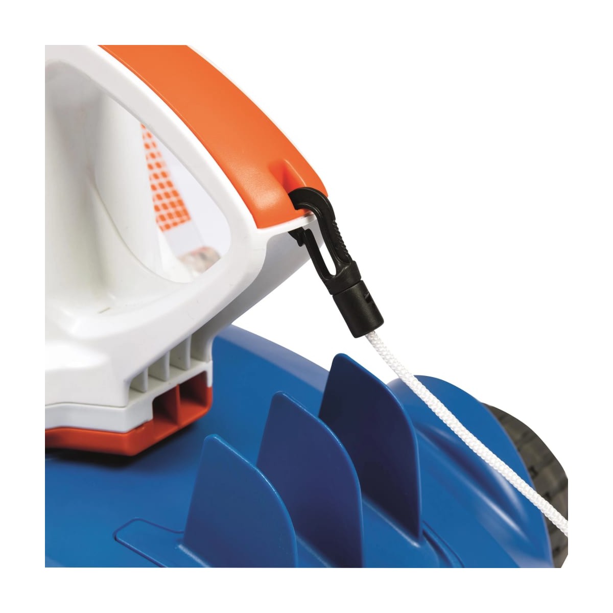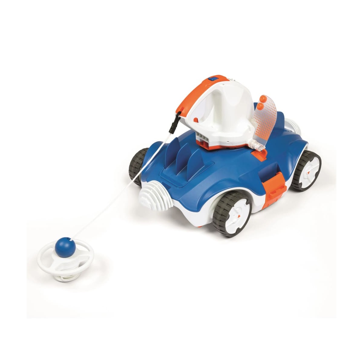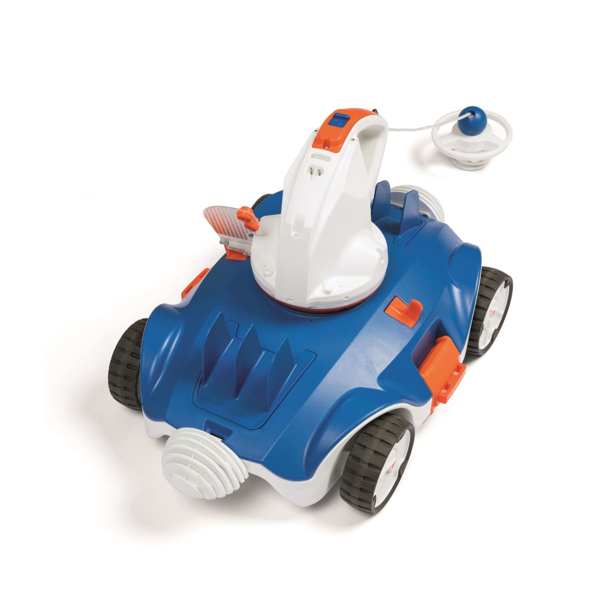 Aquatronix es el robot limpiapiscinas 58482, de la marca Bestway y hará el trabajo sucio por usted, manteniendo su piscina limpia e intacta. El robot aspirador 58482 de Bestway es inalámbrico y está configurado con una amplia variedad de movimientos, y es compatible con cualquier piscina de fondo liso. El procedimiento no podría ser más sencillo: el dispositivo se controla mediante un único interruptor de encendido. Los sensores integrados permiten al Bestway 58482 Aquatronix empezar a limpiar nada más introducirlo en el agua, y deja de funcionar cuando se saca del agua, por lo que su motor puede durar más tiempo. Los clips de bloqueo facilitan su limpieza y mantenimiento; solo tiene que abrir el compartimento y retirar los restos de suciedad del filtro de acero inoxidable. El compartimento del robot aspirador automático Bestway 58482 puede contener hasta 4,5 litros de suciedad antes de ser vaciado.Gracias al chorro direccional, podrá eliminar suciedad y partículas hasta 2700 L/h. El eje de rueda ajustable y los topes extraíbles permiten personalizar su robot para adaptarlo a piscinas de todos los tipos y tamaños. Asimismo, el Aquatronix incluye una práctica asa, una luz LED para su uso durante la noche y un kit para sacar el robot del agua sin que usted tenga que meterse en ella.