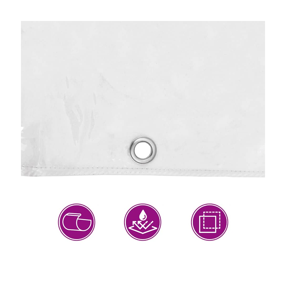 Esta lona transparente tiene una variedad de funciones, como cubrir el uso en exteriores e interiores. Material duradero y resistente al agua: la lona transparente está hecha de PVC y los bordes tienen una cuerda de nailon, lo que la hace resistente al agua, duradera y duradera. Con una transparencia de aproximadamente el 100 %, puede verificar el objeto cubierto sin tener que quitar la lona.Ojales prácticos: la lona transparente está equipada con ojales en las cuatro esquinas y a lo largo de los bordes para una fácil fijación.Amplias aplicaciones: esta lona no solo protege las piscinas de la caída de hojas y otros muebles de exterior de la lluvia y el polvo, sino que también puede servir como una cortina de puerta básica o una barrera de balcón resistente a la lluvia.Fácil de guardar: esta lona transparente es fácil de plegar a un tamaño compacto para guardarla fácilmente en áreas pequeñas o para llevarla de viaje.