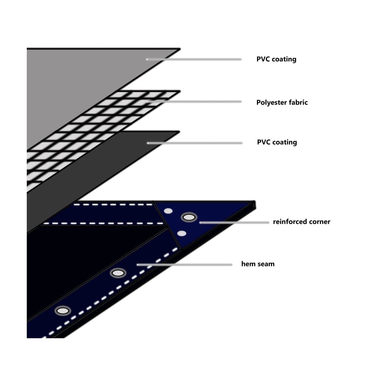 Nuestra versátil y resistente lona es ideal para cubrir muebles de jardín, almacenes de troncos, remolques, coches, barcos, bicicletas, zonas de trabajo y materiales de construcción, y los protege de los elementos. La lona también se puede utilizar como cubierta para un remolque o camioneta abierta o como sábana para acampar. El toldo está hecho de lona de alta calidad con revestimiento de PVC, que la hace resistente al desgarro, resistente al agua, a los rayos UVA y resistente al moho, y se puede usar en temperaturas que varían de -30 °C a 70 °C. La lona está equipada con ojales en todas las esquinas y a lo largo de los bordes para facilitar el cierre.