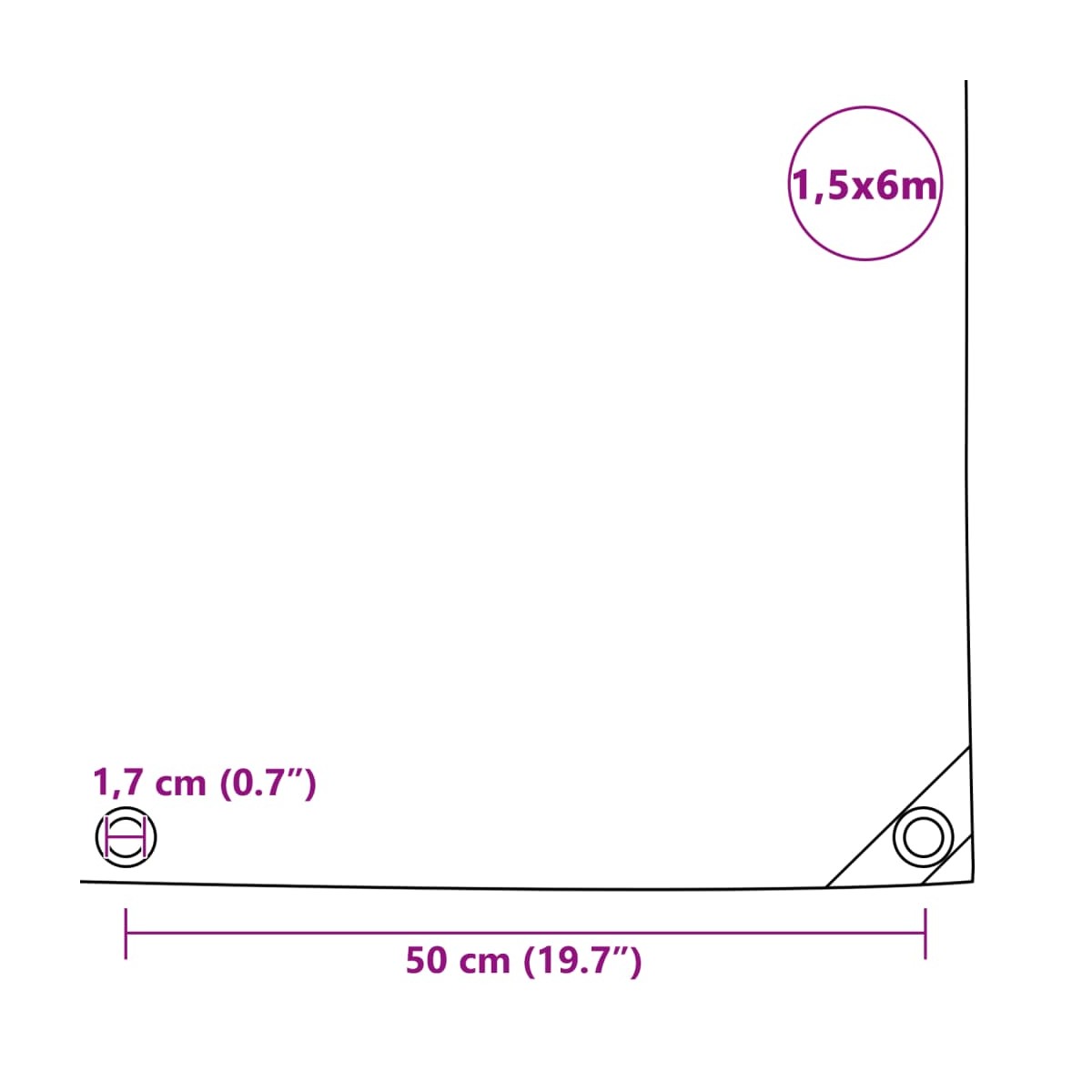 - Con ojales metálicos en todas las esquinas y a lo largo de los bordes
