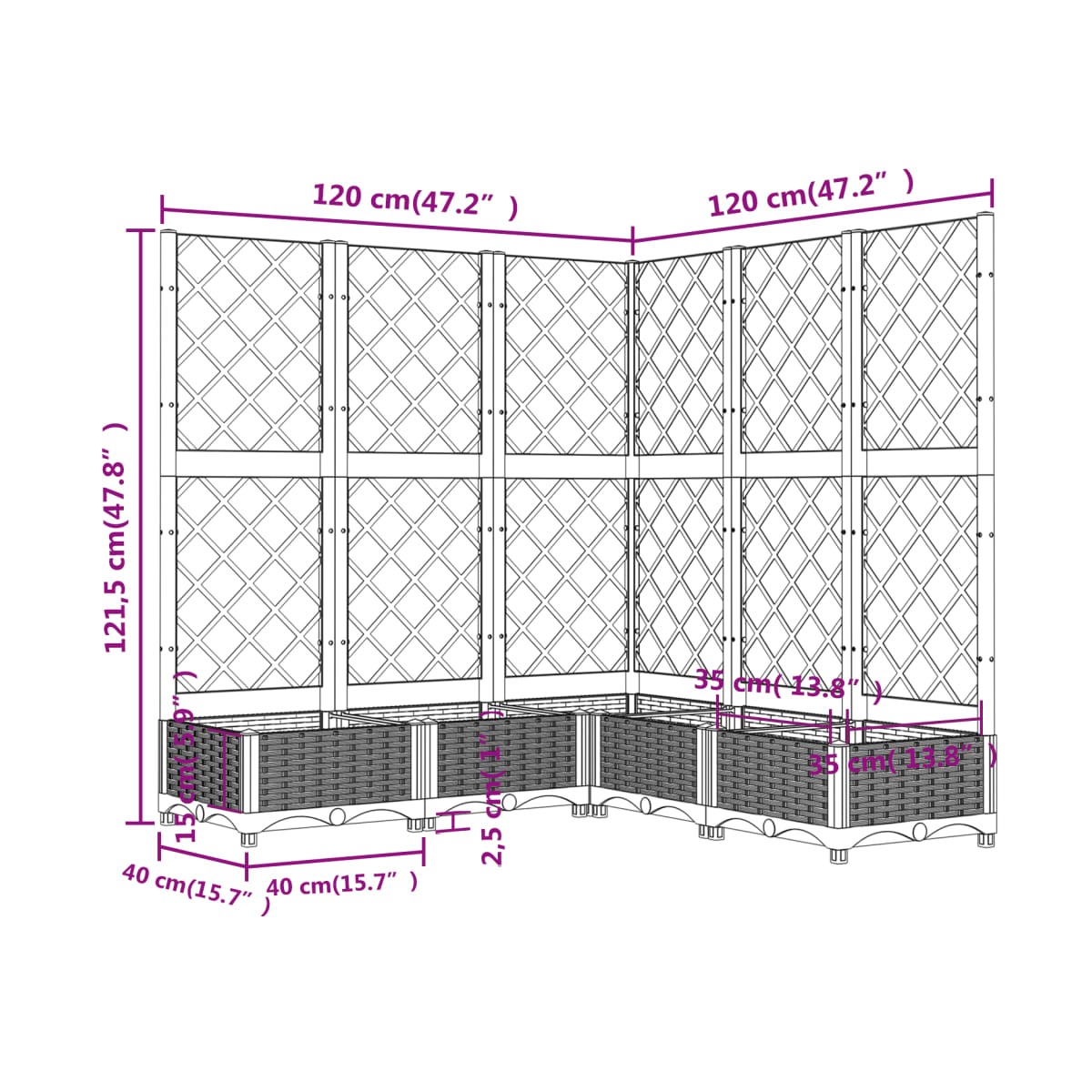 Esta jardinera con enrejado es una excelente opción para las plantas trepadoras del jardín, del patio y de la terraza.