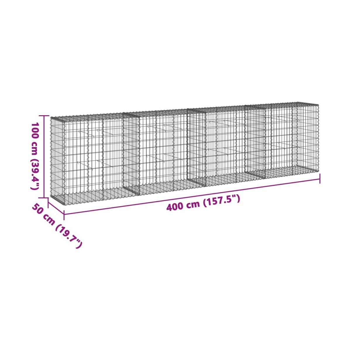 Ya sea para paisajismo, decoración exterior o estructuras funcionales, esta cesta de gaviones ofrece infinitas posibilidades para transformar tu espacio exterior. Material resistente y duradero: Construida con alambres de hierro galvanizado, la jaula de gaviones es muy duradera y resistente al óxido y la corrosión, por lo que es ideal para su uso al aire libre en todas las condiciones climáticas. Ganchos espaciadores para mayor estabilidad: Los ganchos espaciadores suministrados conectan firmemente los paneles de alambre de la jaula de gaviones, garantizando que conserve su forma incluso cuando se llena de piedras, rocas, grava u otros materiales. Montaje sin herramientas: No se necesitan herramientas para montar esta cesta metálica de gaviones. Solo tienes que alinear las rejillas adyacentes y girar las varillas en espiral para fijarlas entre sí, y la cesta de gaviones estará lista para usar. Personalizable y versátil: Dependiendo de tus preferencias o de la distribución del espacio, puedes utilizar la cesta de gaviones sola o combinar varias cestas para crear impresionantes muros de contención de gaviones, pantallas de privacidad, escudos contra precipitaciones o elementos decorativos en tu jardín. Información útil:La entrega incluye únicamente la cesta de gaviones. Las piedras no están incluidas. Podrás recibir accesorios de repuesto que se pueden utilizar para reemplazar los rotos o viejos.