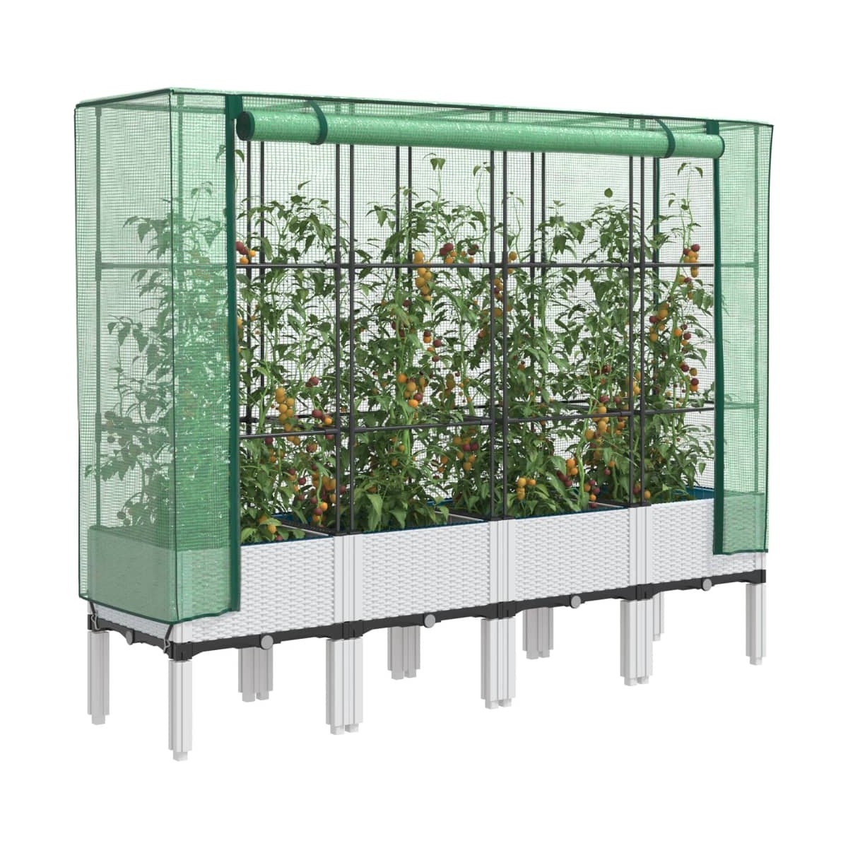 Esta arriate con cubierta de invernadero ofrece mucho espacio de cultivo gracias a su robusto armazón de soporte.Construcción robusta: El arriate elevado, construido en polipropileno, cuenta con un robusto armazón de tubos de hierro en la parte superior, que permite a las plantas crecer y trepar por él.Cubierta funcional: El arriate elevado cuenta con una cubierta de polietileno resistente al agua que protege tus plantas de temperaturas extremas y mantiene alejados insectos, pájaros y pequeños animales.Diseño práctico: El arriate elevado incluye cremalleras para la ventilación, lo que permite ajustar la cubierta según sea necesario. Además, cuenta con cuerdas en la parte superior, lo que facilita la sujeción de la red al tubo.Diseño con aspecto de ratán: El arriate elevado, con diseño de aspecto de ratán, añade un toque de encanto natural a su espacio de vida al aire libre.Diversos usos: El arriate elevado proporciona un amplio espacio para tus plantas, verduras, hierbas y flores. Puedes utilizarlo en jardines, patios, balcones, etc.