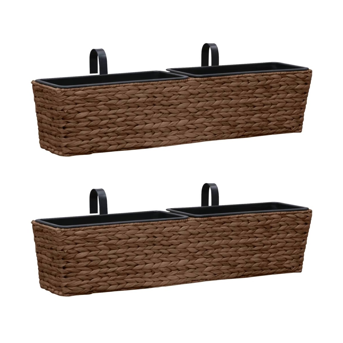 Este adorable juego de maceteros consta de 2 jardineras de jacinto de agua y 4 maceteros extraíbles. Hecha de jacinto de agua muy duradero, su estructura de tejido compacto y sus dos soportes metálicos producen un acabado fino y una gran estabilidad. Además, equipado con 4 recipientes de plástico en el interior, este juego de macetas durará años. En los maceteros se pueden colocar todo tipo de plantas y flores de color verde vivo. ¡Prepárate para recibir un poco de aire fresco con nuestras preciosas jardineras! La entrega incluye 2 jardineras con 4 maceteros extraíbles. Solo aptas para usarse en casa.