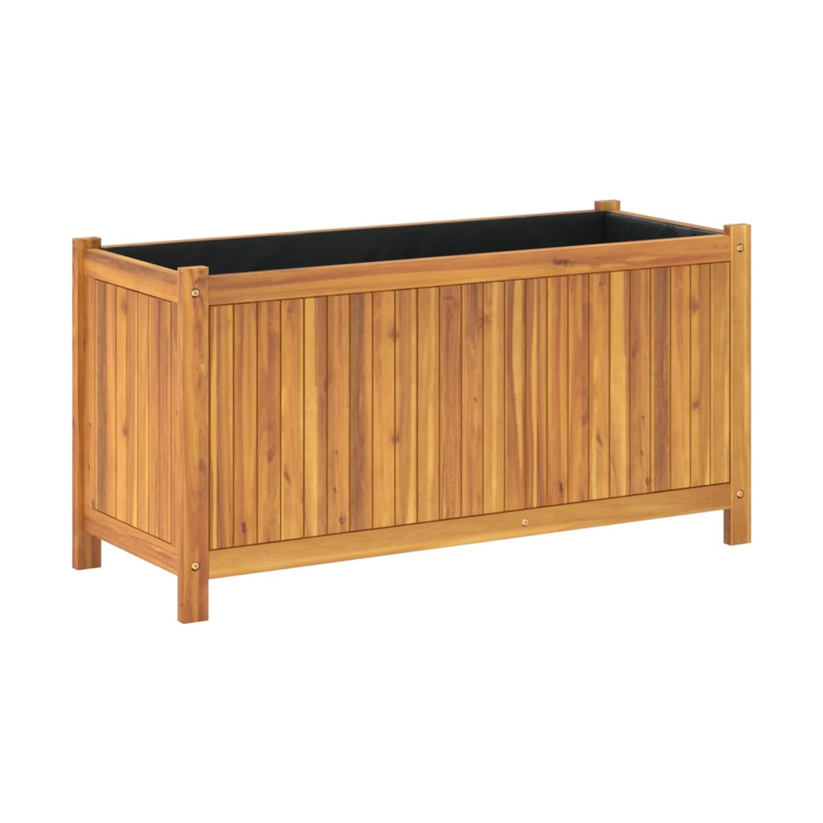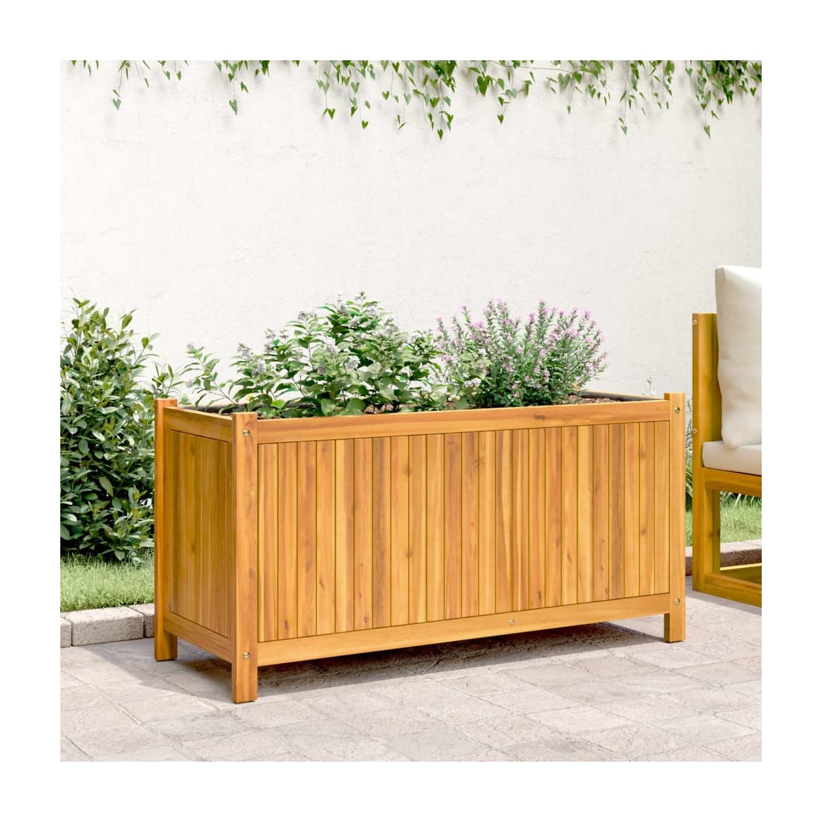 Esta jardinera de madera es ideal para que los entusiastas del bricolaje decoren sus jardines, balcones o patios. Material de primera calidad: La madera maciza de acacia es un bonito material natural. La madera de acacia es una madera dura tropical, densa, robusta y duradera.Dos formas de uso: Puedes usar la bolsa de tela no tejida como forro y rellenar la jardinera con tierra o simplemente poner macetas dentro.Diseño práctico: Los listones inferiores de madera facilitan el drenaje y evitan que las raíces se pudran.Función decorativa: Utiliza la jardinera de patio para crear tu propio pequeño jardín. Aportará un ambiente animado y será la decoración ideal para tu hogar.