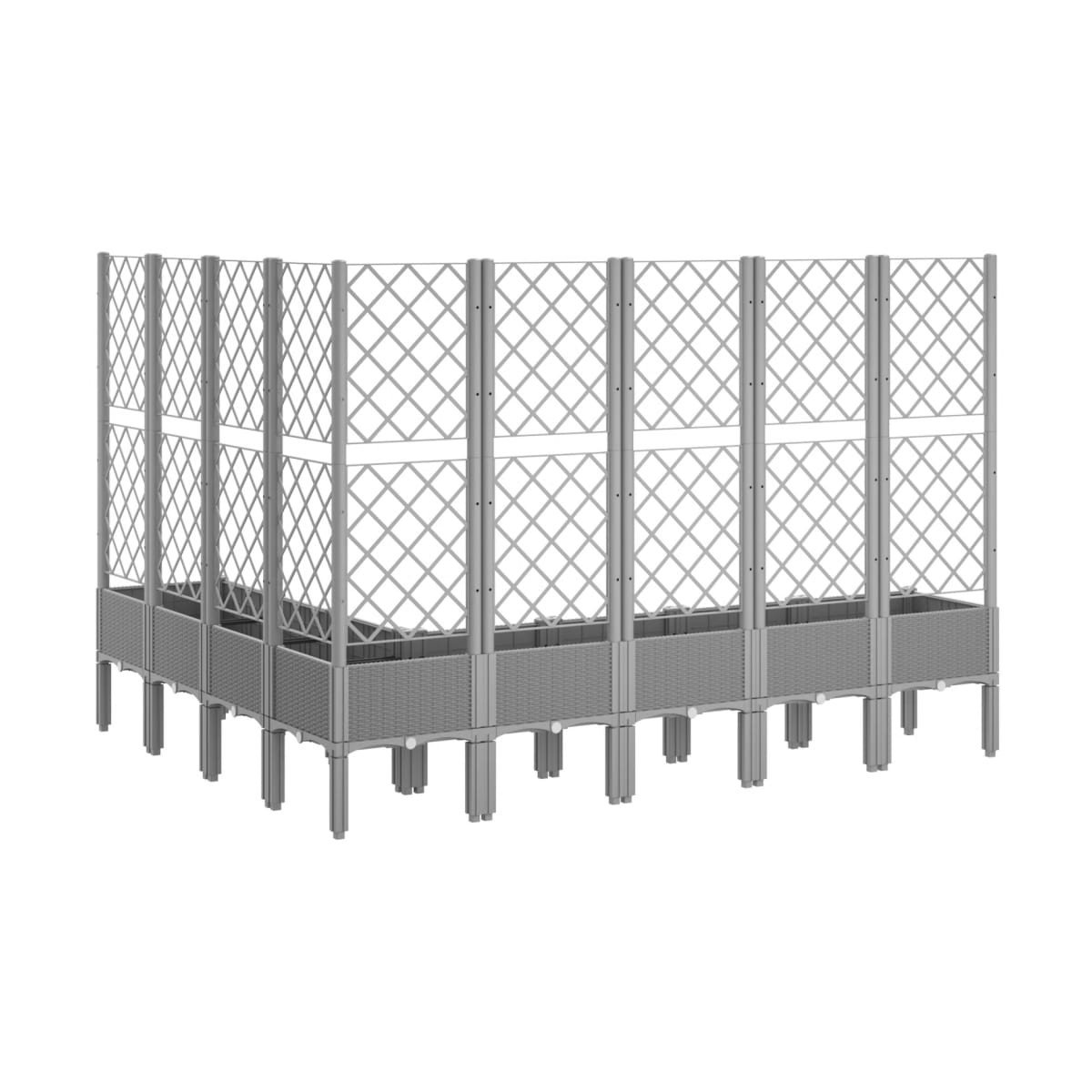 Esta jardinera con enrejado es una excelente opción para las plantas trepadoras del jardín, del patio y de la terraza. Material duradero: El polipropileno es un plástico popular y también es uno de los materiales más utilizados en muebles de exterior. Es ligero, duro y resistente a los impactos.Gran capacidad: La jardinera de exterior proporciona mucho espacio para cultivar todas tus verduras, flores y otras plantas.Diseño práctico: La capa inferior ideal ayuda a retener la humedad y permite un fácil drenaje. Además, el enrejado integrado ofrece un gran apoyo para el cultivo de plantas trepadoras como tomates, guisantes y rosas.Bonito aspecto de ratán: La jardinera de patio está diseñada con un aspecto de ratán, lo que aporta un encanto elegante a tu hogar.Diseño elevado: El diseño elevado de esta jardinera puede proteger las plantas de las malas hierbas y las plagas.