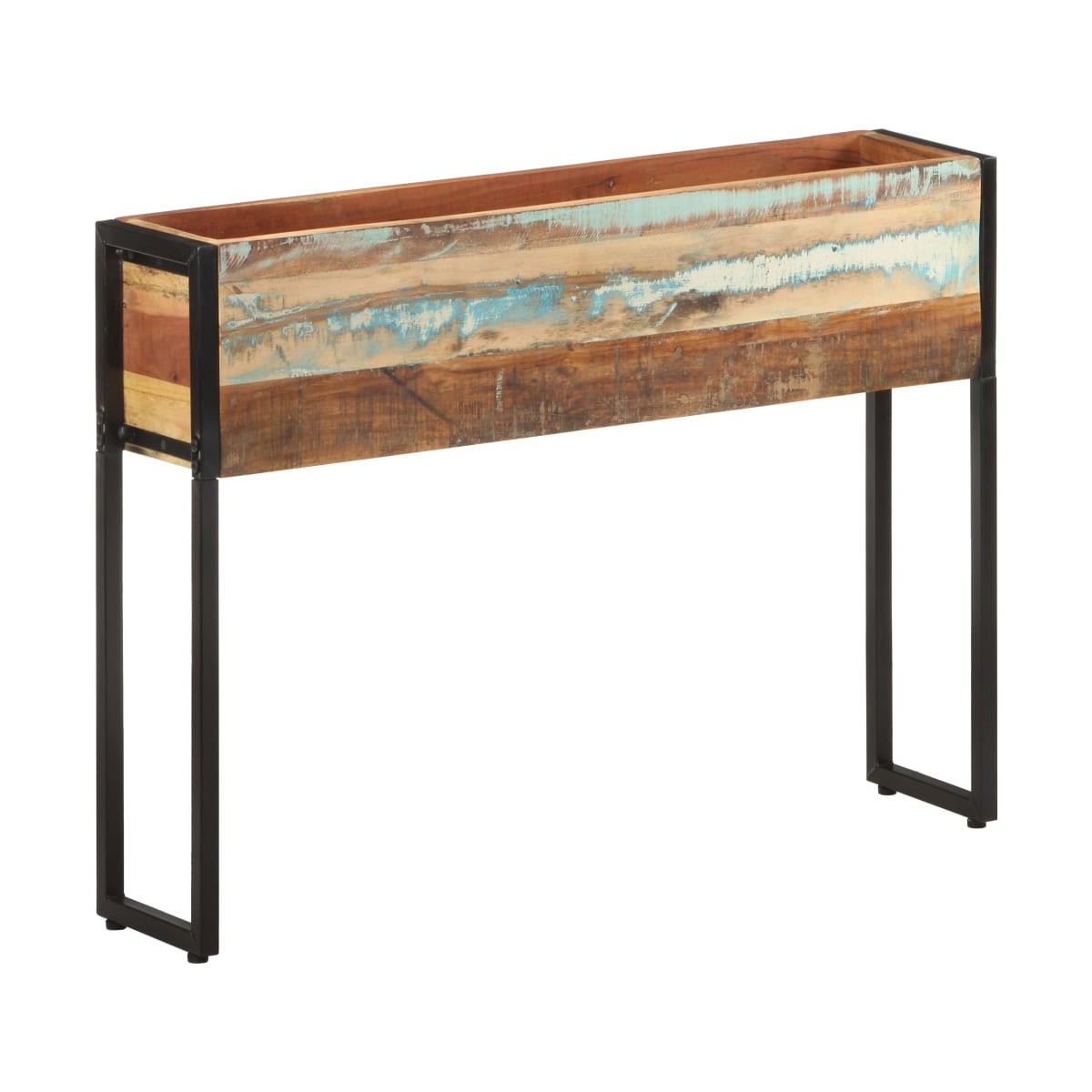 Esta jardinera de madera es perfecta para el cultivo de hortalizas, flores, hierbas y frutas. Gracias a su diseño decorativo, será un aporte elegante a su sala de estar, jardín, balcón o patio. Esta jardinera está hecha de madera maciza reciclada que proviene de vigas, suelos y vigas de soporte de viejos edificios demolidos. Por lo tanto, puede consistir en diferentes tipos de madera como pino, teca, roble, mango, acacia, etc. Esto también significa que la madera reciclada conserva las características de estos tipos de madera. La madera reciclada ya está envejecida, desgastada y seca, por lo que no se encoge ni se dobla. Además, la estructura de hierro con recubrimiento en polvo le agrega estabilidad adicional. La jardinera está situada a una altura de trabajo ideal, lo que facilita la plantación para la espalda y las rodillas y reduce la fatiga. Además, la maceta ahorra espacio ya que el espacio debajo de ella se puede utilizar para almacenar semillas, tierra, una regadera, etc. Nota importante: Los colores y las vetas pueden variar de una pieza a otra, lo que hace que cada maceta de madera sea única y ligeramente diferente de la siguiente. La entrega también es aleatoria.