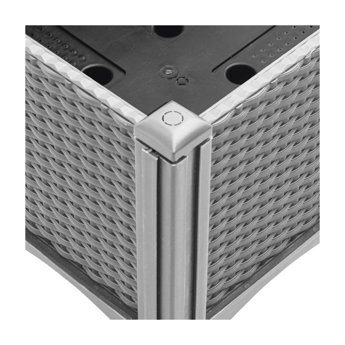 Esta jardinera es una excelente opción para plantas trepadoras en tu jardín, patio y terraza. Material duradero: El polipropileno es un plástico popular y también es uno de los materiales más utilizados en muebles de exterior. Es ligero, duro y resistente a los impactos.Gran capacidad: La jardinera de exterior proporciona mucho espacio para cultivar todas tus verduras, flores y otras plantas.Diseño inferior: La capa inferior es ideal ya que ayuda a conservar la humedad y facilita el drenaje.Bonito aspecto de ratán: La jardinera de patio está diseñada con un aspecto de ratán, lo que aporta un encanto elegante a tu hogar.Diseño elevado: El diseño elevado de esta jardinera puede proteger las plantas de las malas hierbas y las plagas.