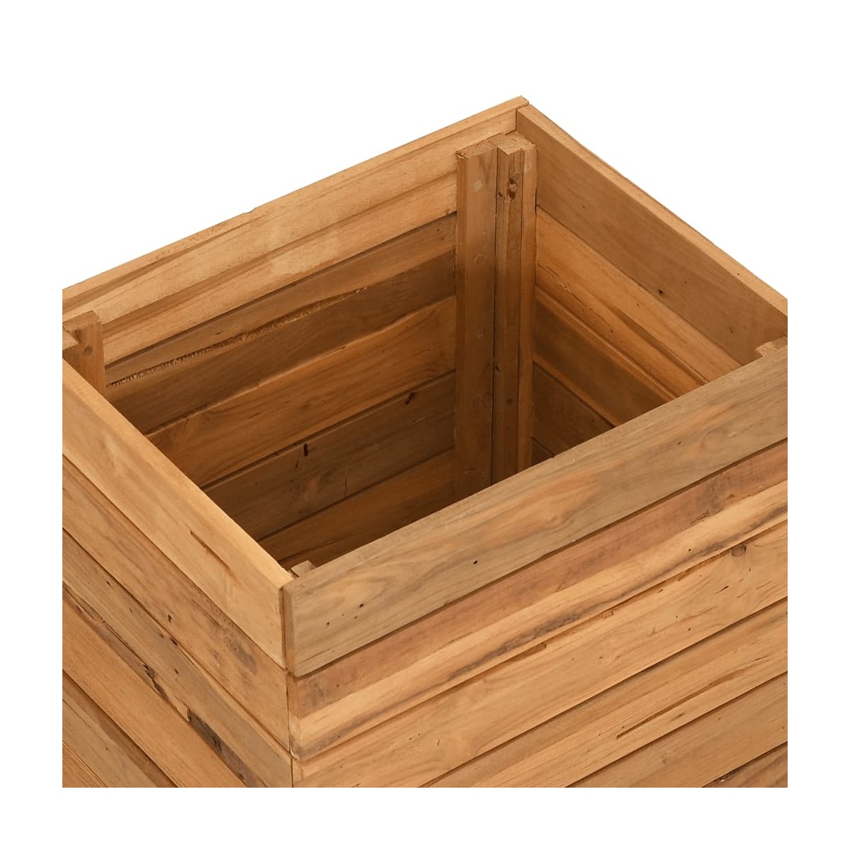 Esta jardinera de madera con patas puede albergar un número considerable de plantas o flores y será un elegante complemento para el salón, el jardín, el balcón o el patio. Hecha de madera de teca reciclada, esta jardinera es muy resistente y duradera. Las hermosas vetas de la madera hacen que cada mueble sea único y ligeramente diferente al resto. Las cuatro patas de madera de la parte inferior refuerzan la estabilidad. El fondo de la jardinera está equipado con una rejilla de acero para colocar macetas. Además, el artículo es fácil de montar. Nota importante: Los colores varían de una pieza a otra, por lo que cada una es única. La entrega es aleatoria, lo que garantiza la exclusividad y la individualidad del producto.