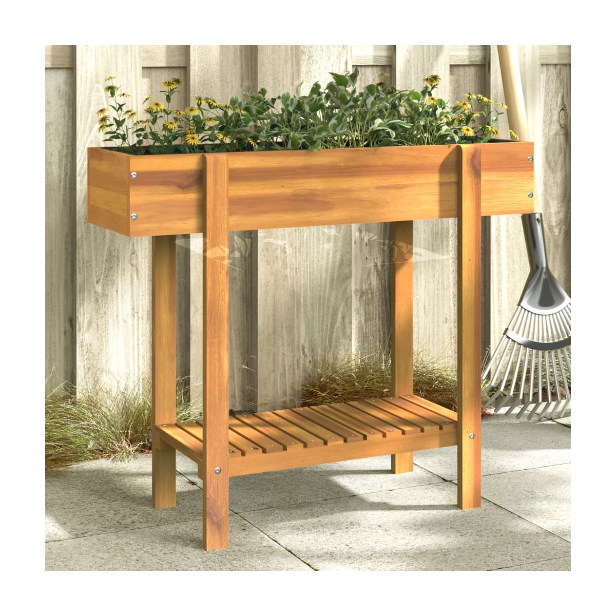 Este arriate de jardín es una excelente opción para que los aficionados al bricolaje decoren sus salones, balcones y patios. Material de primera calidad: La madera maciza de acacia es un bonito material natural. La madera de acacia es una madera dura tropical, densa, robusta y duradera.Altura óptima: La cama elevada, con una altura de trabajo ergonómica óptima, le permite pararse o sentarse cómodamente frente a la jardinera y protege sus rodillas y espalda.Amplio espacio para plantar: Esta jardinera de exterior tiene una caja de flores profunda para plantar, que proporciona un amplio espacio de plantación para cultivar vegetales, hierbas, flores y plantas.Estante práctico: La maceta de hierbas está diseñada con un estante, lo que le permite almacenar tierra para macetas y accesorios para plantas al alcance de la mano.