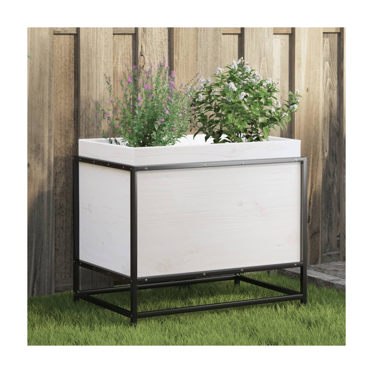 Esta jardinera es ideal para que los aficionados al bricolaje decoren jardines, balcones o patios. Madera de pino maciza: La madera de pino maciza es un bonito material natural. La madera de pino tiene vetas rectas, y los nudos dan al material su distintivo aspecto rústico.Estructura robusta: La estructura de acero de la jardinera garantiza robustez y estabilidad.Gran capacidad: La jardinera de exterior proporciona mucho espacio para cultivar todas tus verduras, flores y otras plantas.Función decorativa: Utiliza la jardinera de patio para crear tu propio pequeño jardín. Aportará un ambiente animado y será la decoración ideal para tu hogar.