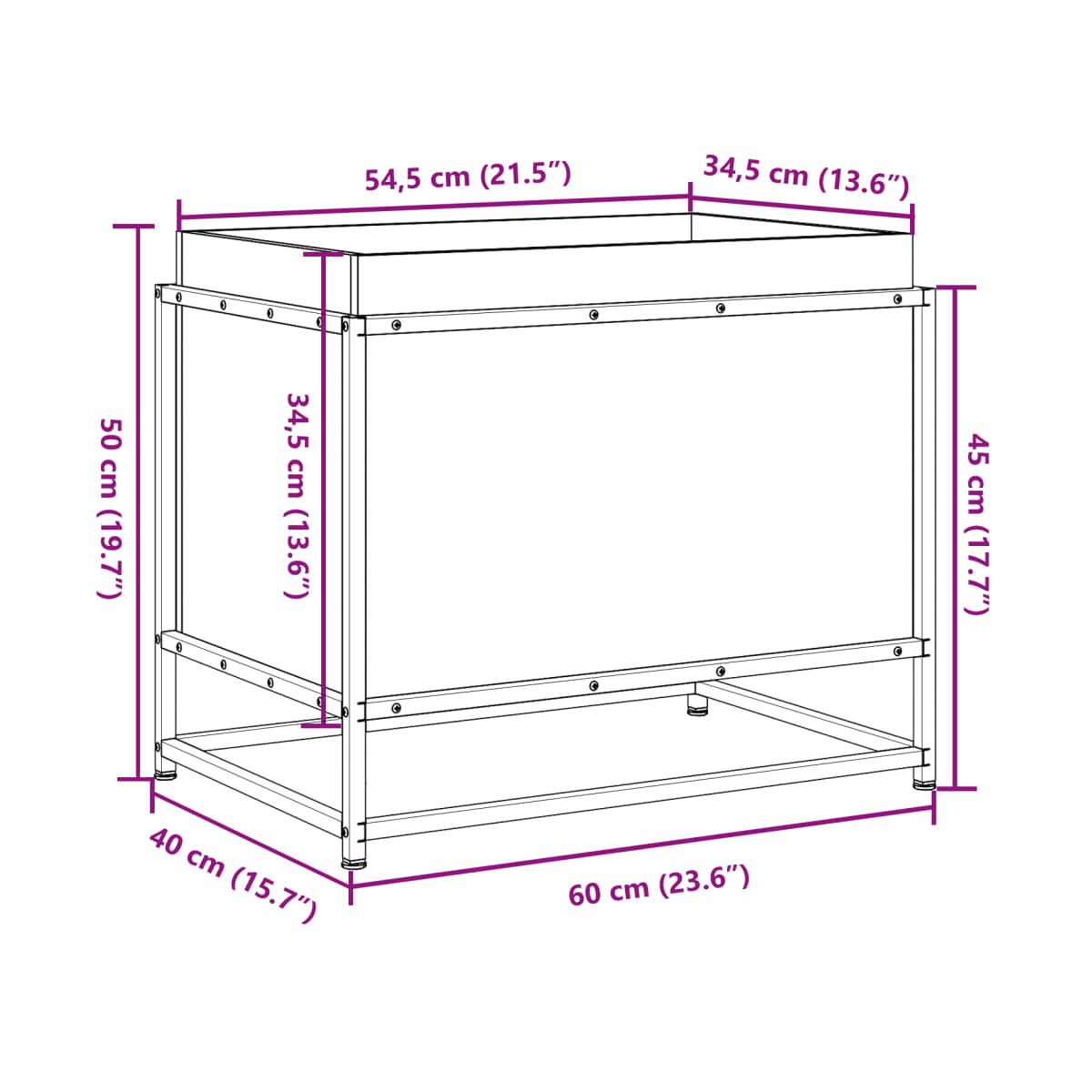- Dimensiones totales: 60 x 40 x 50 cm (ancho x profundo x alto)