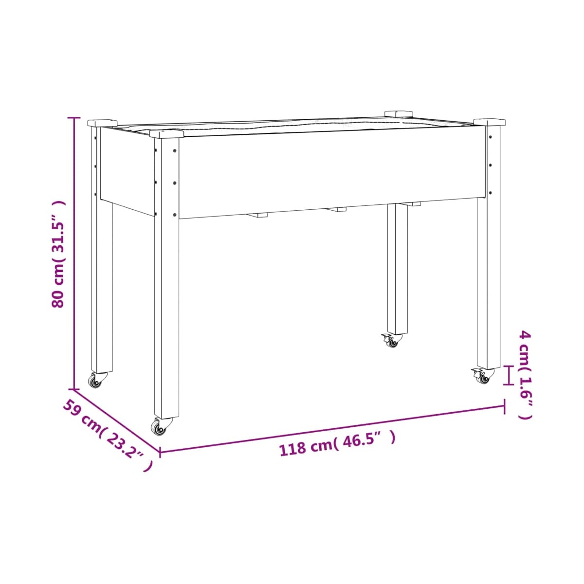 Esta jardinera con ruedas con forro es una excelente opción para los entusiastas del bricolaje para decorar sus jardines, balcones o patios. La madera de abeto maciza es un material natural hermoso. La madera de abeto no se reseca ni se deforma si se ve expuesta a la humedad.Amplio espacio: La jardinera brinda un amplio espacio para acomodar una cantidad considerable de plantas, vegetales, hierbas y flores.Práctico forro interior: El revestimiento interior incluido separa la madera de la tierra, para mantener el macetero en un estado excelente y para que las malas hierbas o los animales no interfieran en el crecimiento de las plantas.Práctico orificio de drenaje: Los orificios de drenaje de la maceta permiten que se drene el exceso de agua, manteniendo la tierra fresca y evitando que las plantas acumulen agua o se acumulen minerales.Ruedas flexibles: La jardinera es fácil de mover con las ruedas equipadas. Y 2 de estas ruedas están diseñadas con frenos, lo que hace que la maceta de jardín se mantenga en el suelo más estable.