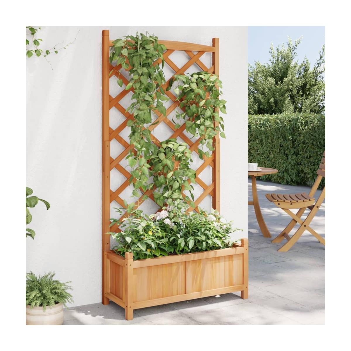 Esta jardinera de madera con enrejado es una excelente opción para plantas enredaderas en tu jardín, patio y terraza. Madera maciza de abeto: La madera maciza de abeto es un material bonito y duradero que mantiene su integridad incluso cuando se expone a la humedad. No se seca ni se deforma, lo que la convierte en una opción fiable.Espacio suficiente: Esta jardinera es lo suficientemente amplia y profunda, lo que brinda un amplio espacio para cultivar una variedad de plantas, flores y vegetales. Además, el fondo hueco permite una buena ventilación y drenaje.Panel de cerca enrejado: La jardinera de patio viene con un hermoso panel de cerca enrejado que es perfecto para sostener plantas trepadoras y colgantes como rosas, hiedra o enredaderas. También agrega una característica visual impresionante a tu patio o jardín.Diversos usos: Esta jardinera de exterior está diseñada con una barra superior redonda, lo que le da una apariencia elegante que complementa cualquier espacio al aire libre. Se puede colocar en un rincón del patio o apoyarse contra una pared o valla. Información útil:La entrega sólo incluye la jardinera; el forro no está incluido.