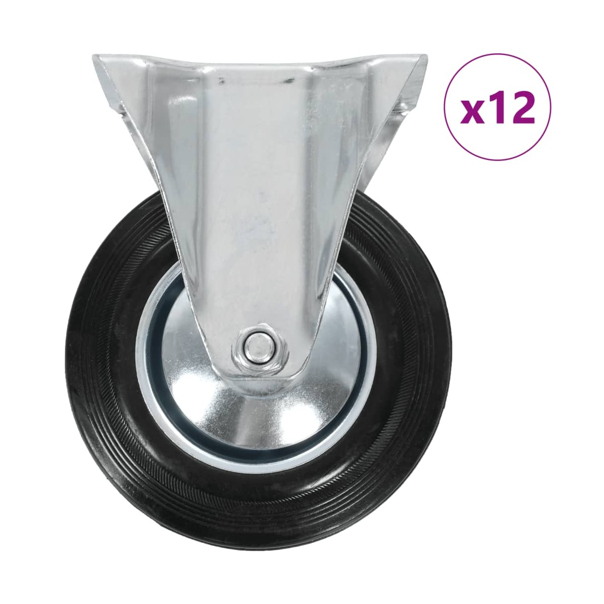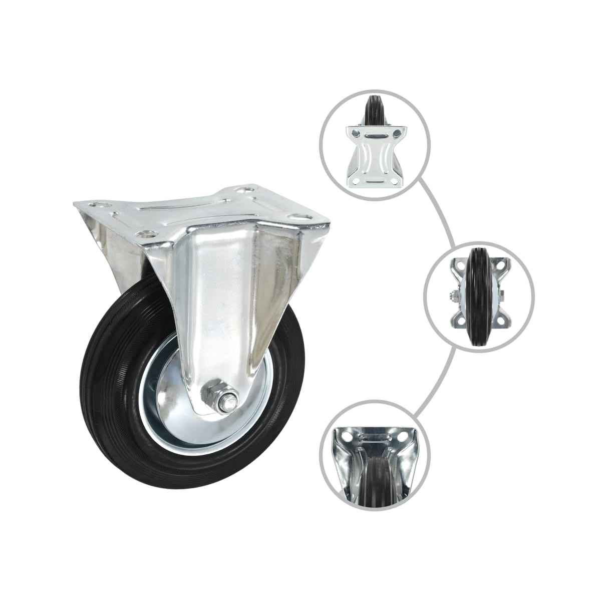 Este set de 12 ruedas fijas será el accesorio ideal para pequeños equipamientos o muebles, como bancos de trabajo, carritos, trolleys, mesas de centro, maceteros, estanterías, carritos de la compra, etc. Estas ruedas están hechas de goma, que se distingue por su buena capacidad de absorber impactos y por su resistencia a las vibraciones. Esto hace que las ruedas se desplacen suavemente y sin hacer ruido. Su superficie suave evita eficazmente que rallen el suelo. Y su estructura de hierro recubierta de zinc es muy resistente a la oxidación y contribuye a su robustez y durabilidad. Cada rueda tiene una capacidad de carga máxima de hasta 150 kg. La entrega incluye 12 ruedas fijas.