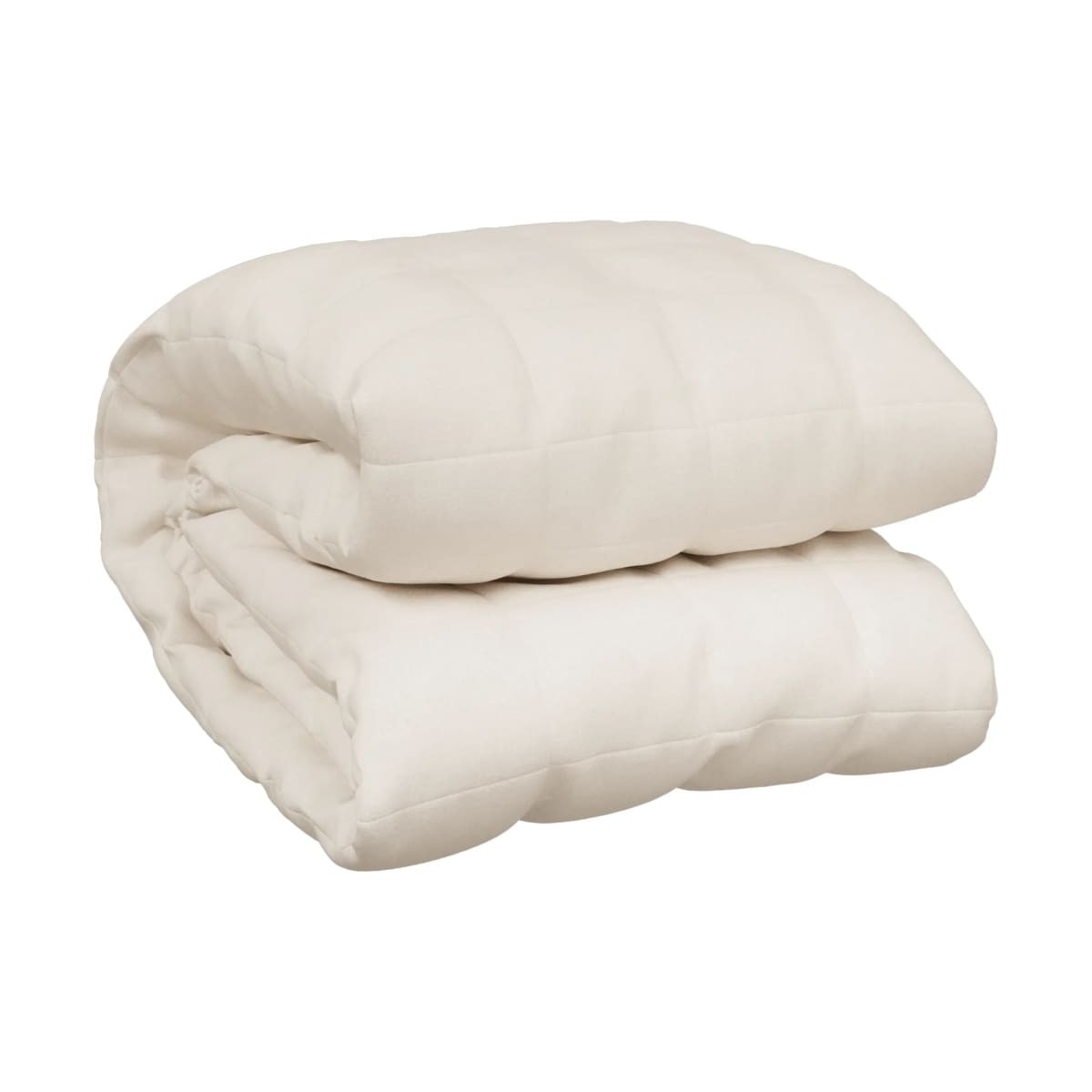 ¿Problemas para dormir por la noche? Esta manta con peso es la ayuda perfecta para dormir. Esta manta produce una presión suave y cómoda que ayuda a tu cuerpo y mente a encontrar el descanso que necesita. Tejido cómodo: El tejido de algodón posee un aspecto limpio, es suave al tacto, transpirable y duradero.Relleno hipoalergénico: La manta está rellena con una combinación de fibras de poliéster y perlas de vidrio hipoalergénicas sin olor.Distribución uniforme del peso: La manta con peso está diseñada para simular el 10 % de tu peso corporal. Los compactos bolsillos acolchados distribuyen el peso por todo el cuerpo de manera uniforme.Prácticos lazos internos: lLa manta relajante con lazos internos se puede amarrar a cualquier funda nórdica del mismo tamaño.
