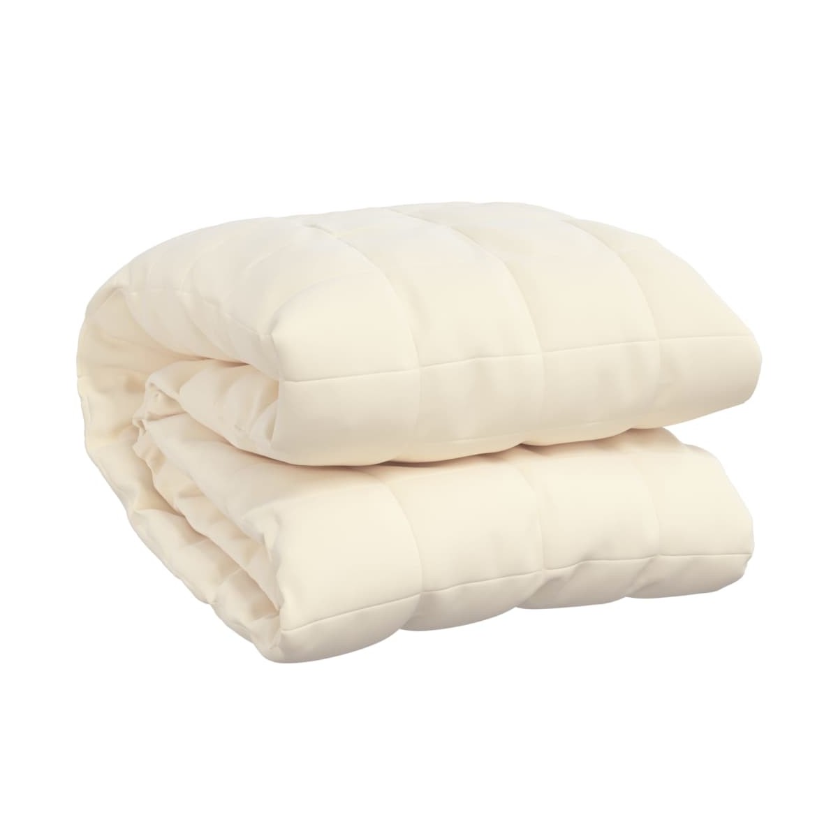 ¿Problemas para dormir por la noche? Esta manta con peso produce una presión suave y cómoda que ayuda a tu cuerpo y mente a encontrar el descanso que necesita. Material cómodo: La tela posee un aspecto sencillo y limpio, y es transpirable y duradera. Un lado de esta manta de edredón está hecho de tela de hilo corto y el otro lado está hecho de tela cepillada.Relleno suave: La manta está rellena con una combinación de fibras de poliéster y perlas de vidrio inodoras.Distribución uniforme del peso: La manta con peso está diseñada para simular el 10 % de tu peso corporal. Los compactos bolsillos acolchados distribuyen el peso por todo el cuerpo de manera uniforme.Prácticos lazos internos: lLa manta relajante con lazos internos se puede amarrar a cualquier funda nórdica del mismo tamaño.
