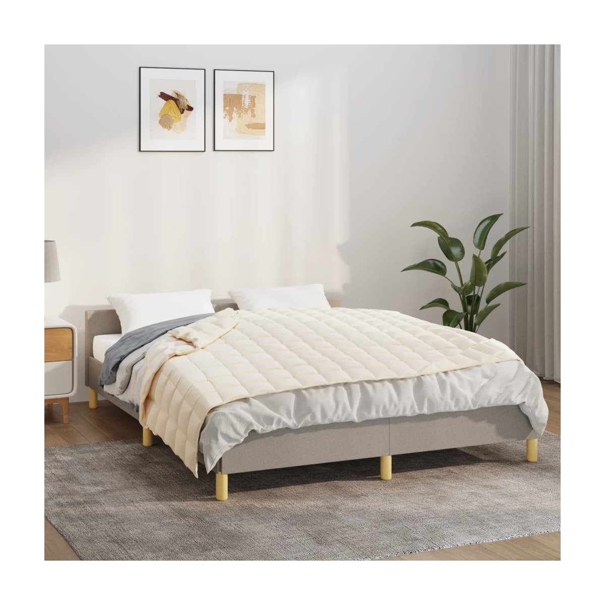 ¿Problemas para dormir por la noche? Esta manta con peso produce una presión suave y cómoda que ayuda a tu cuerpo y mente a encontrar el descanso que necesita. Material cómodo: La tela posee un aspecto sencillo y limpio, y es transpirable y duradera. Un lado de esta manta de edredón está hecho de tela de hilo corto y el otro lado está hecho de tela cepillada.Relleno suave: La manta está rellena con una combinación de fibras de poliéster y perlas de vidrio inodoras.Distribución uniforme del peso: La manta con peso está diseñada para simular el 10 % de tu peso corporal. Los compactos bolsillos acolchados distribuyen el peso por todo el cuerpo de manera uniforme.Prácticos lazos internos: lLa manta relajante con lazos internos se puede amarrar a cualquier funda nórdica del mismo tamaño.