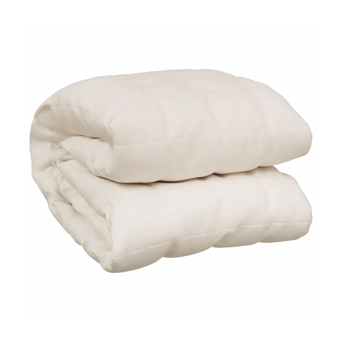¿Problemas para dormir por la noche? Esta manta con peso produce una presión suave y cómoda que ayuda a tu cuerpo y mente a encontrar el descanso que necesita. Tejido cómodo: El tejido de algodón posee un aspecto limpio, es suave al tacto, transpirable y duradero.Relleno suave: La manta está rellena con una combinación de fibras de poliéster y perlas de vidrio inodoras.Distribución uniforme del peso: La manta con peso está diseñada para simular el 10 % de tu peso corporal. Los compactos bolsillos acolchados distribuyen el peso por todo el cuerpo de manera uniforme.Prácticos lazos internos: lLa manta relajante con lazos internos se puede amarrar a cualquier funda nórdica del mismo tamaño.