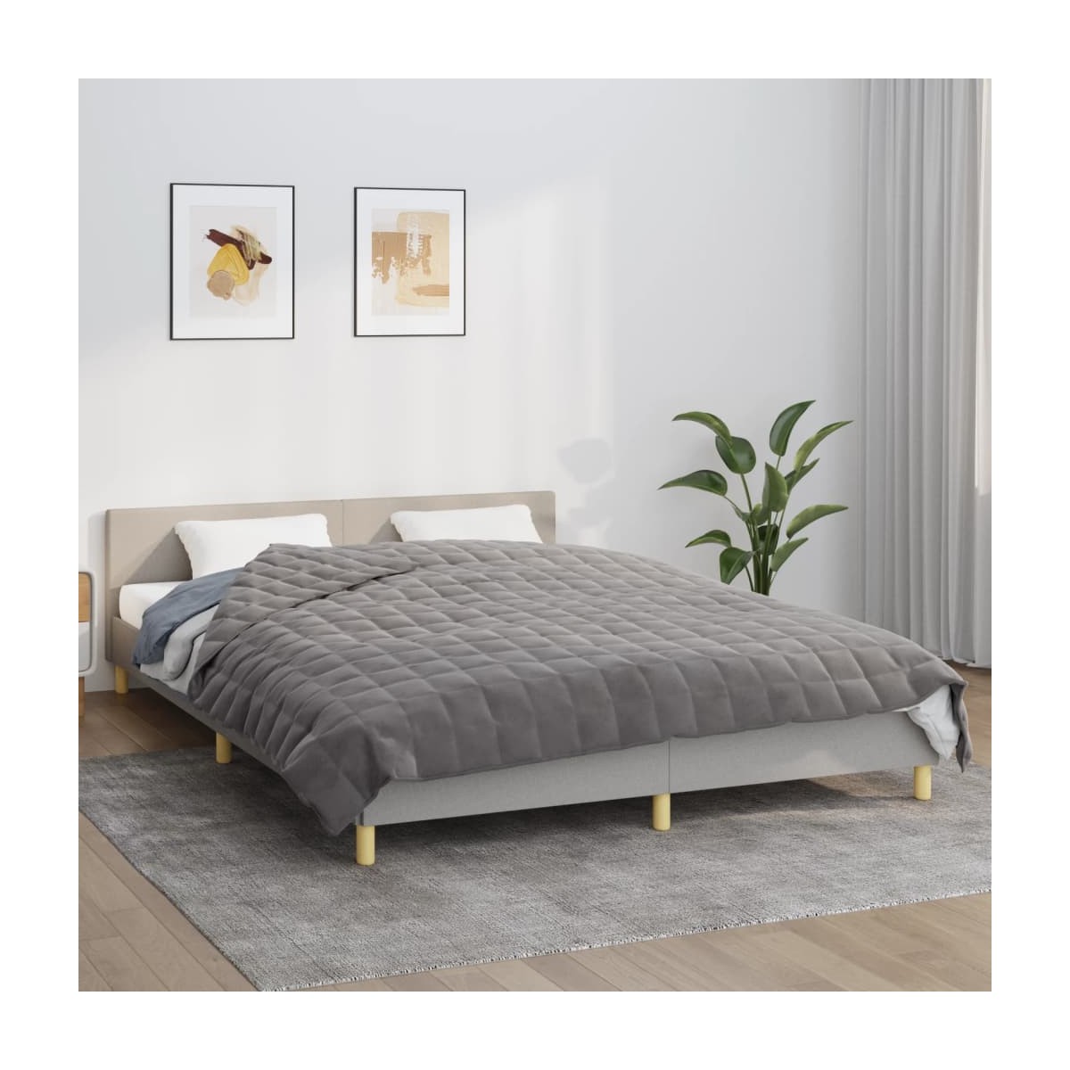 ¿Problemas para dormir por la noche? Esta manta con peso produce una presión suave y cómoda que ayuda a tu cuerpo y mente a encontrar el descanso que necesita. Material confortable: La tela posee un aspecto sencillo y limpio, y es transpirable y duradera. Un lado de esta manta de edredón está hecho de tela de hilo corto y el otro lado está hecho de tela cepillada.Relleno suave: La manta está rellena con una combinación de fibras de poliéster y perlas de vidrio inodoras.Distribución uniforme del peso: La manta con peso está diseñada para simular el 10 % de tu peso corporal. Los compactos bolsillos acolchados distribuyen el peso por todo el cuerpo de manera uniforme.Prácticos lazos internos: lLa manta relajante con lazos internos se puede amarrar a cualquier funda nórdica del mismo tamaño.