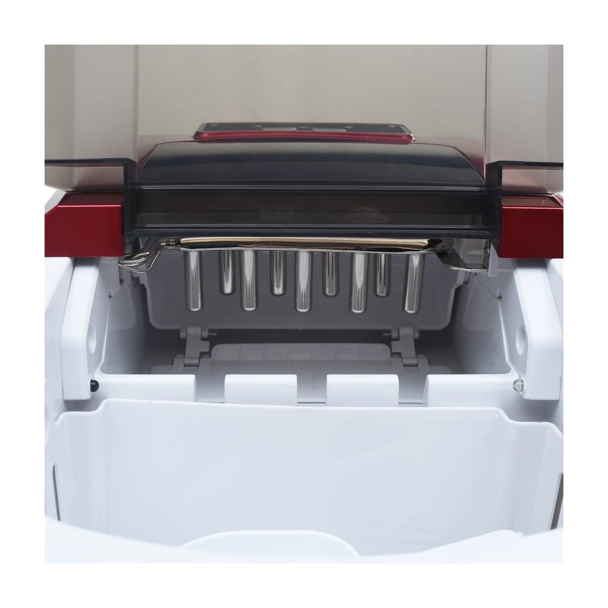 Con esta moderna máquina de hacer cubitos de hielo podrás preparar las mejores bebidas y batidos con hielo para ti o para tus invitados en cualquier momento. Esta máquina de cubitos de hielo produce hasta 12-15 kg por día y 9 cubitos en cada ciclo. El depósito integrado consigue almacenar hasta 2,4 L de agua de cada vez. La máquina hace cubitos de hielo rápido y con poco ruido. Incluye una tapa transparente y cuenta con una pantalla LED con que poder saber en todo momento en qué estado se encuentran los cubitos. La propia máquina avisará cuando ya esté llena de hielo o si falta agua. El producto es fácil de montar. Ten en cuenta que debes poner la máquina de cubitos de hielo con la parte delantera hacia arriba durante 48 horas antes de poder usarla.
