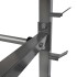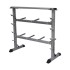 Este soporte de mancuernas y pesas está diseñado para colocar pesas, mancuernas y barras organizadas dentro y fuera del suelo. Se adapta a la mayoría de los tamaños y estilos de mancuernas, incluidas de neopreno y hierro fundido. La estructura estable y los dos estantes te ayudarán a mantener un ambiente de gimnasio en casa más limpio al proporcionar un lugar para estacionar sus pesas cuando no estén en uso. Está hecho de acero resistente para años de uso. La base antideslizante de goma ayuda a proteger el suelo de daños y garantiza la estabilidad y seguridad óptima. Este estante con su construcción resistente tiene una máxima carga de 300 kg. Es también adecuada para casi todas las longitudes de pesas . Mide 49 por 100 por 95 cm cuando está completamente montado.