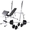 Este banco de abdominales multifuncional de alta calidad, equipado con un asiento ajustable y un respaldo, es una excelente opción para las personas a las que les gusta hacer ejercicio en casa. El banco se entrega con un juego de barras y mancuernas. En el respaldo se apoya la espalda y los hombros, mientras que la flexión de piernas entrena los muslos y las piernas. Este banco de entrenamiento de fitness multifuncional permite un entrenamiento efectivo de todo el cuerpo. Equipado con muchas perillas ajustables, el banco proporciona una gran variedad de ángulos y alturas de ajuste; por lo tanto, te permite elegir la posición deseada. El asiento grueso y acolchado es muy cómodo, mientras que la estructura de acero resistente hace que el banco sea estable y duradero. El juego de barras y mancuernas cuenta con barras cromadas sólidas con collares de resorte de acción rápida (para barra de pesas), empuñaduras moleteadas antideslizantes y tapones de rosca de estrella estriados (para barras de mancuernas) para una fijación segura de los discos de pesas. Puedes hacer ejercicio sin preocuparte por cuestiones de seguridad. Los discos de peso están fabricados con una robusta carcasa de polietileno. Se pueden combinar de varias maneras para diferentes propósitos de capacitación. La entrega incluye un banco de abdominales, una barra de pesas, dos barras de mancuernas, seis discos de pesas de 1,25 kg, cuatro discos de pesas de 2,5 kg, cuatro discos de pesas de 5 kg, dos discos de pesas de 10 kg, cuatro tapas y dos collares de resorte.