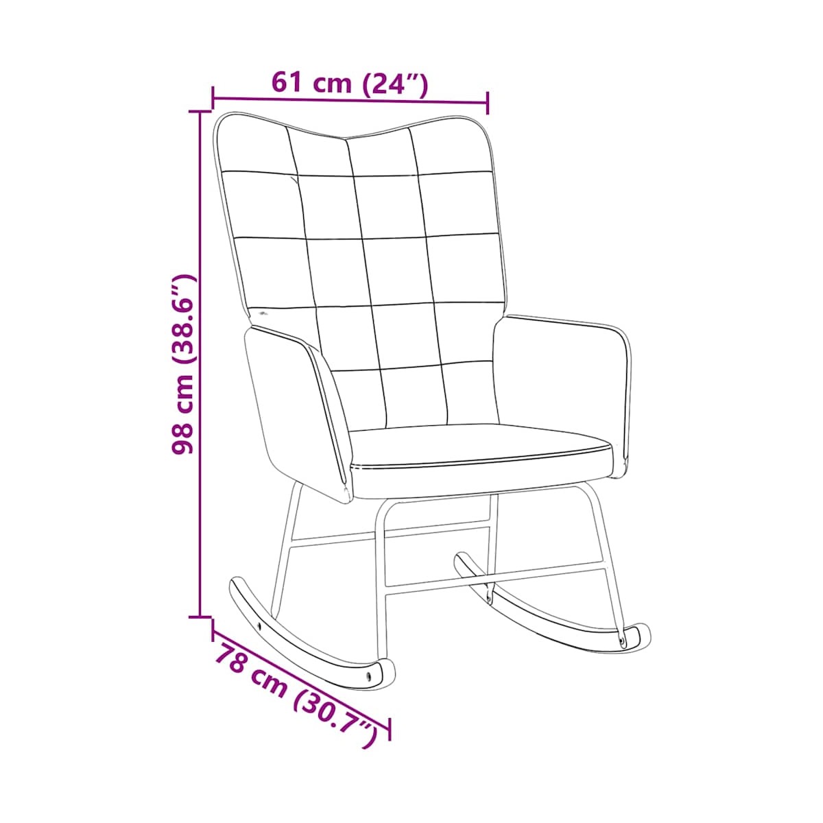 ¿Buscas una silla para descansar por completo después de un día ajetreado? ¡Esta cómoda mecedora es la elección perfecta! Material suave y cómodo: La tela de terciopelo ofrece una superficie suave y lisa que proporciona una agradable sensación contra el tacto, aportándole calidez y el máximo confort.Estructura robusta y estable: la estructura de madera contrachapada y metal del sillón garantiza robustez y estabilidad.Cómoda experiencia de asiento: el sillón viene con un asiento y respaldo densamente acolchados, así como apoyabrazos para una gran comodidad.Patas de madera: Las patas de madera proporcionan una excelente estabilidad y le dan al sillón un aspecto natural y agradable. Gracias al diseño de rieles largos que se balancean, el sillón no se volcará fácilmente.Amplias aplicaciones: este sillón es un complemento versátil y elegante para cualquier espacio de ocio del hogar o la oficina. Ya sea que lo coloques cerca del sofá de la sala de estar o crees un rincón acogedor en tu dormitorio o estudio, realzará la estética de tu espacio vital.