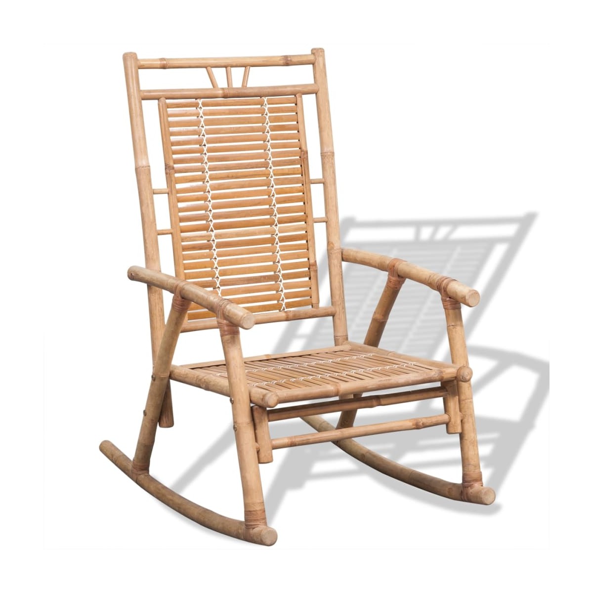 Esta silla mecedora de bambú es una excelente opción para relajarte en tu jardín o patio. Hecha de bambú macizo, esta silla es fácil de limpiar, fuerte y duradera. Al ser resistente a los rayos UV y a la intemperie, la silla de bambú puede usarse tanto en interiores como en exteriores. La silla mecedora será un aporte fabuloso para cualquier casa. Almacenamiento: Si es posible, guardar en un lugar fresco y seco en el interior. Si el producto se almacena en el exterior, protégelo con una cubierta impermeable. Limpia y seca el exceso de agua o nieve de las superficies planas después de una lluvia o nevada. Permite la ventilación para evitar daños relacionados con la humedad.