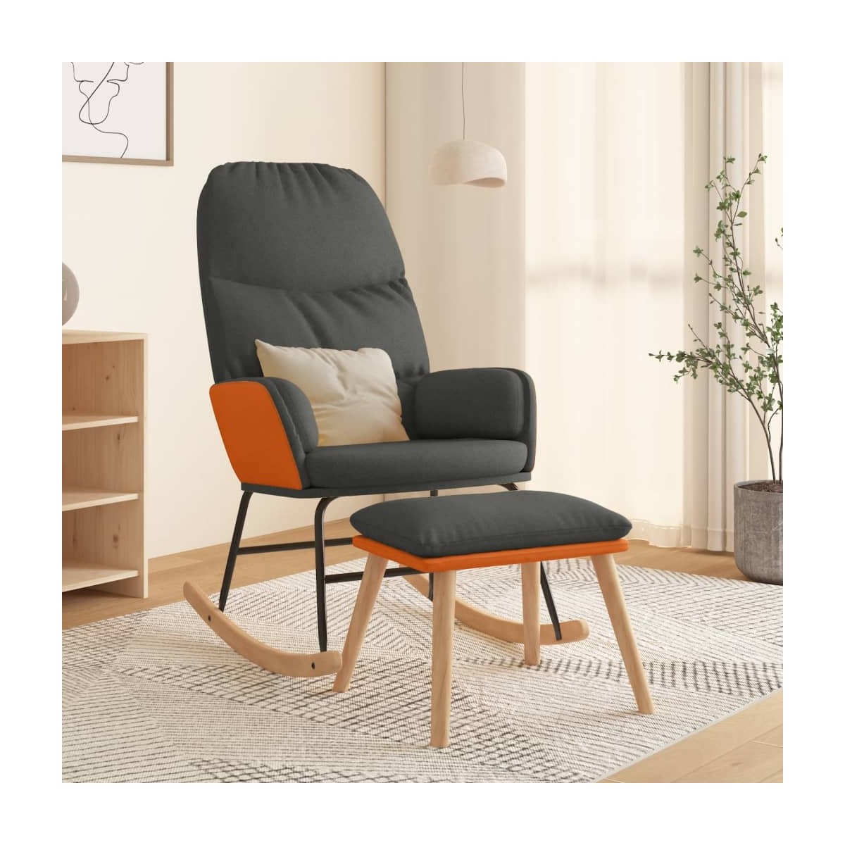 Relájate y siéntate cómodamente en esta mecedora. Es una elección perfecta para relajarse. Material de primera calidad: El tejido posee un aspecto sencillo y limpio, y es transpirable y duradero. El cuero sintético de primera calidad es un material muy duradero. Es resistente a las manchas, por lo que es fácil de limpiar con un paño húmedo.Confort adicional: Los reposabrazos te permiten descansar los brazos cómodamente. Es perfecto para relajarte y levantar tus pies con el reposapiés incluido. Puedes colocar el reposapiés en cualquier lugar, según tu preferencia. Patas mecedoras: Relájate sentándote cómodamente mientras disfrutas de un balanceo calmante y suave.