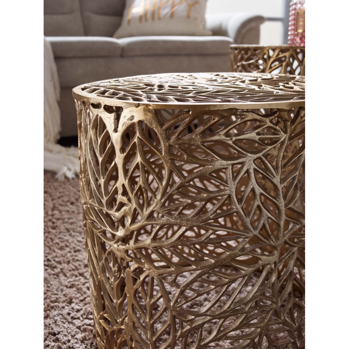 - Las mesas nido no solo deben ser prácticas, sino también hermosas a la vista. Dos estantes y la característica de ahorro de espacio que la mesa pequeña se coloca debajo de la mesa grande cubren el lado práctico. El llamativo patrón floral le da al par hecho a mano ese algo especial y mágicamente llama la atención sobre sí mismo. ¡Ahora todo lo que tienes que hacer es elegir un asiento y ordenar! Mesa grande (An x Pr x Al): 41 x 41 x 42 cm // Mesa pequeña (Ø x Al): 36 x 36 x 38 cm. Ambas mesas están hechas de aluminio, que está pintado de oro. Lo mejor es limpiar la superficie con un paño de algodón ligeramente humedecido con agua tibia y eliminar la humedad residual con un paño sin pelusa. No utilice cepillos duros ni esponjas de metal, ya que rayarán la cesta de metal o la superficie de la mesa. Evite los agentes abrasivos y los productos de limpieza agresivos. Un juego de 2 mesas auxiliares sin decoración. Estado de entrega: completamente ensamblado y embalado de forma segura.