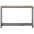 ¡Si estás buscando agregar un toque simple de encanto rústico a tu decoración de interior, esta consola de madera es una elección perfecta! Esta mesa auxiliar está hecha de madera maciza reciclada que proviene de vigas, suelos y vigas de soporte de viejos edificios demolidos. Por lo tanto, puede consistir en diferentes tipos de madera como pino, teca, roble, mango, acacia, etc. Esto también significa que la madera reciclada conserva las características de estos tipos de madera. La madera reciclada ya está envejecida, desgastada y seca, por lo que no se encoge ni se dobla. Además, las patas de hierro con recubrimiento en polvo aportan robustez y estabilidad. El estante proporciona espacio de almacenamiento adicional para que puedas guardar pertenencias. Nota importante: Los colores varían de una pieza a otra, lo que hace que cada una de las mesas de salón de madera sea única.