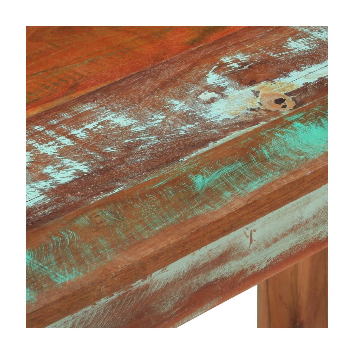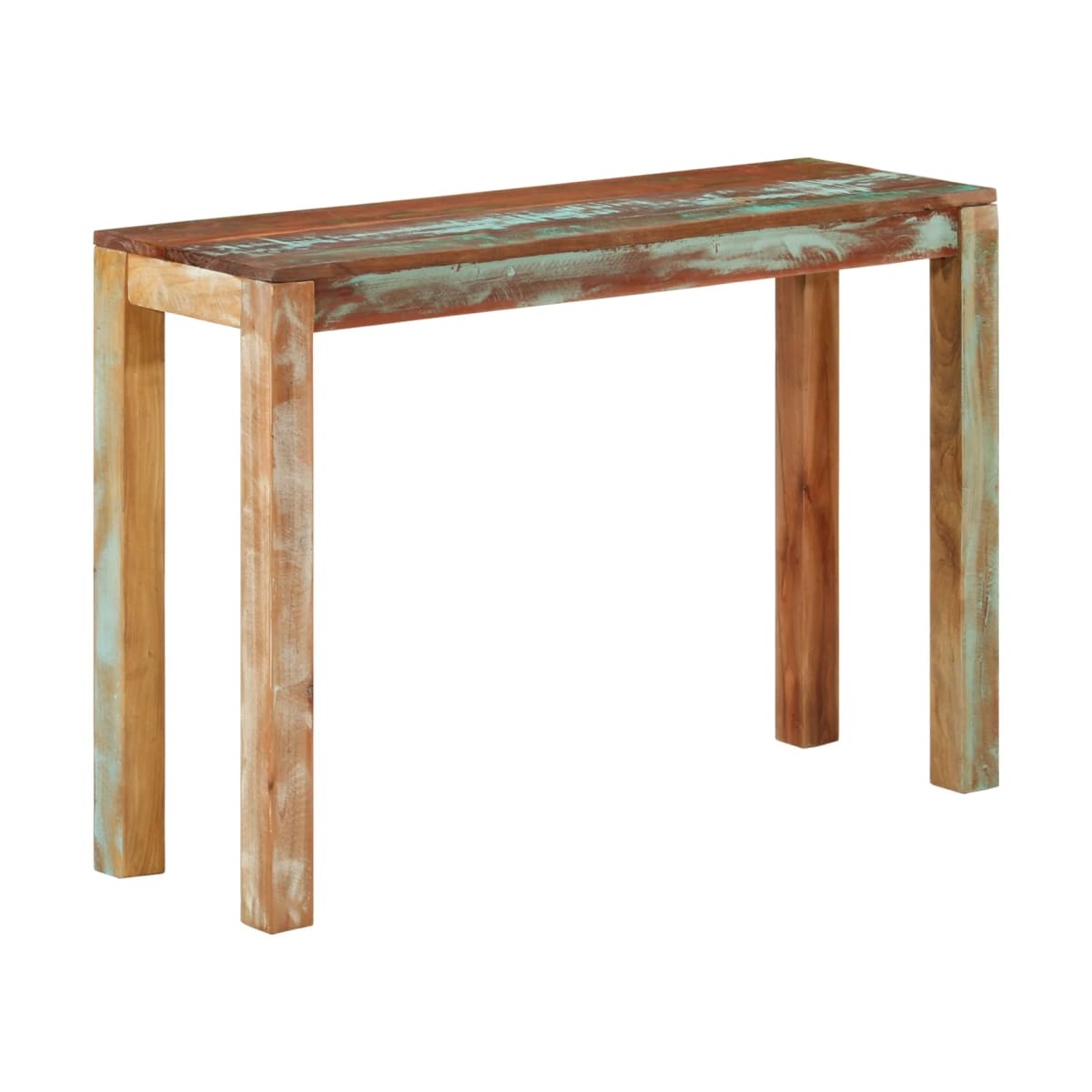 Esta mesa consola de madera agrega un toque de encanto rústico a tu comedor o cocina. La mesa auxiliar está hecha a mano con madera maciza reciclada, una combinación de maderas recuperadas que incluyen teca, madera de mango, pino, haya, etc. Estas maderas se reciclan de edificios antiguos como fábricas, cobertizos y barcos. Esto lo convierte en una fantástica opción ecológica en la fabricación de muebles. Como cada pieza está hecha a mano, los colores varían y se revelan muchos tonos azules, verdes, cremas y, a veces, naranjas, rojos y rosas. ¡Esto incluso significa que cada uno es único! Nota importante: Los colores y las vetas de la madera pueden variar de una pieza a otra, por lo que cada una es única; la entrega es aleatoria.