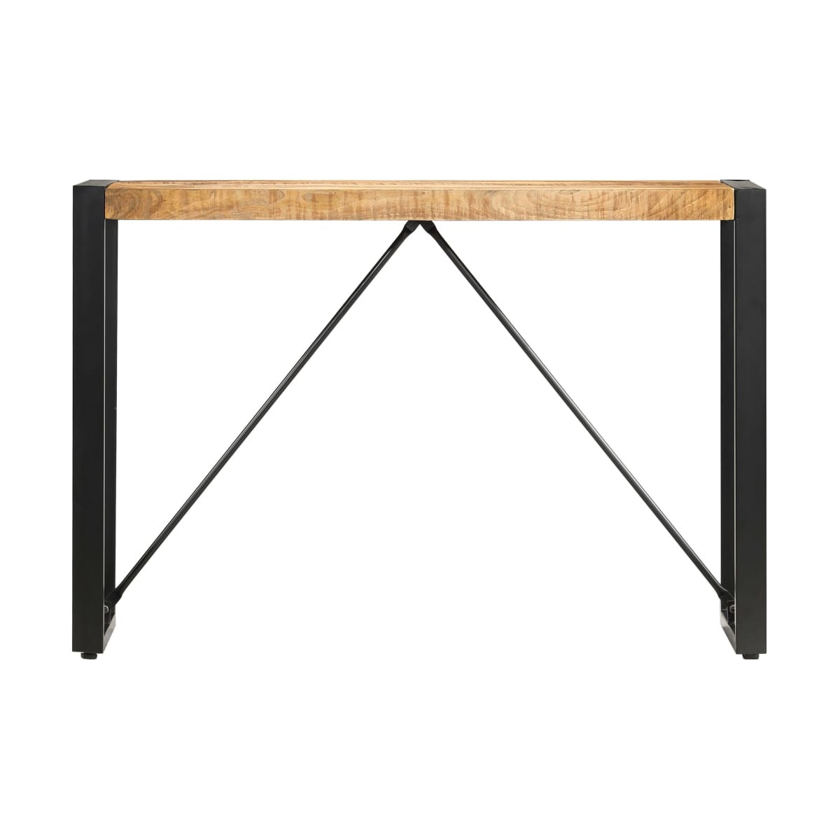 ¡Introduce un aire de encanto industrial en tu hogar con esta elegante mesa consola de madera! La mesa para pasillo está hecha de madera de mango sin tratar, una madera dura, densa y robusta, con hermosas rayas y contornos marrones o dorados en su superficie. La exquisita artesanía y las elegantes vetas de la madera hacen que cada mueble sea único y ligeramente diferente al resto. Cada paso del proceso se lleva a cabo con el mayor cuidado, tanto el pulido como la pintura o el lacado. Además, sus patas de acero con recubrimiento en polvo de color negro aportan estabilidad de la mesa y le dan un encanto industrial. Nota importante: Los colores varían de una pieza a otra, por lo que cada una de nuestras mesas auxiliares es única. La entrega es aleatoria, lo que garantiza la exclusividad e individualidad del producto.