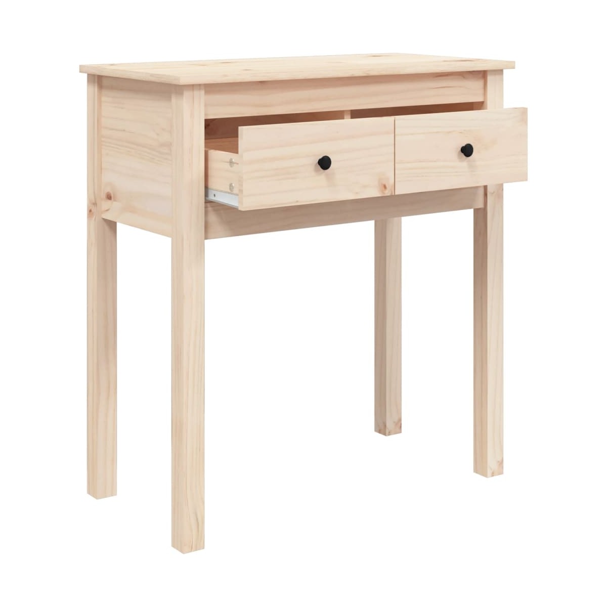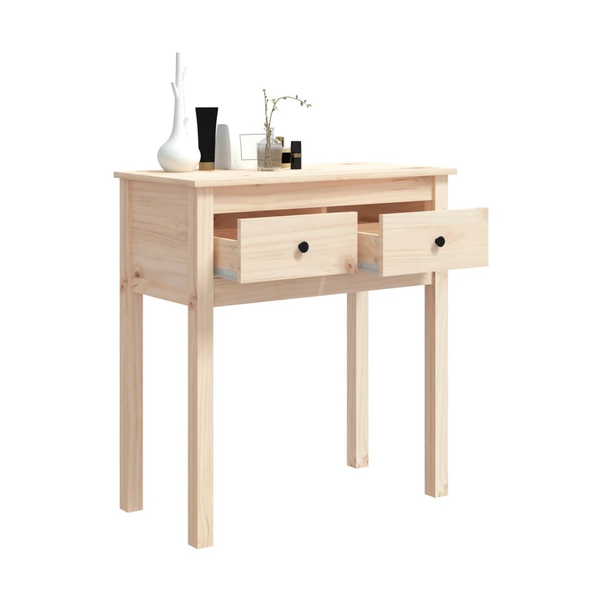 ¡Añade un bonito toque a la estancia con esta clásica mesa consola de madera! Es un complemento práctico y decorativo para la decoración de tu casa. Madera de pino maciza: La madera de pino maciza es un bonito material natural. La madera de pino tiene vetas rectas, y los nudos dan al material su distintivo aspecto rústico. Estructura estable: La estructura de madera garantiza su solidez y estabilidad. Amplio espacio de almacenamiento:La mesa de pasillo tiene 2 cajones, lo que proporciona suficiente espacio de almacenamiento para que puedas tener todos los básicos organizados y a tu alcance. Superficie resistente: La superficie de esta mesita auxiliar es perfecta para exponer tus objetos decorativos favoritos, marcos de fotos y plantas. Múltiples usos: Esta mesita de sofá es adecuada para cualquier lugar de la casa. Se puede utilizar como mesita de entrada, mesita de sofá, mesita decorativa, mesa consola para TV, etc. Advertencia:Para evitar el vuelco, este producto debe usarse con el dispositivo provisto para fijarlo a la pared. Nota:Cada producto viene con un manual de montaje en la caja para facilitar el montaje.