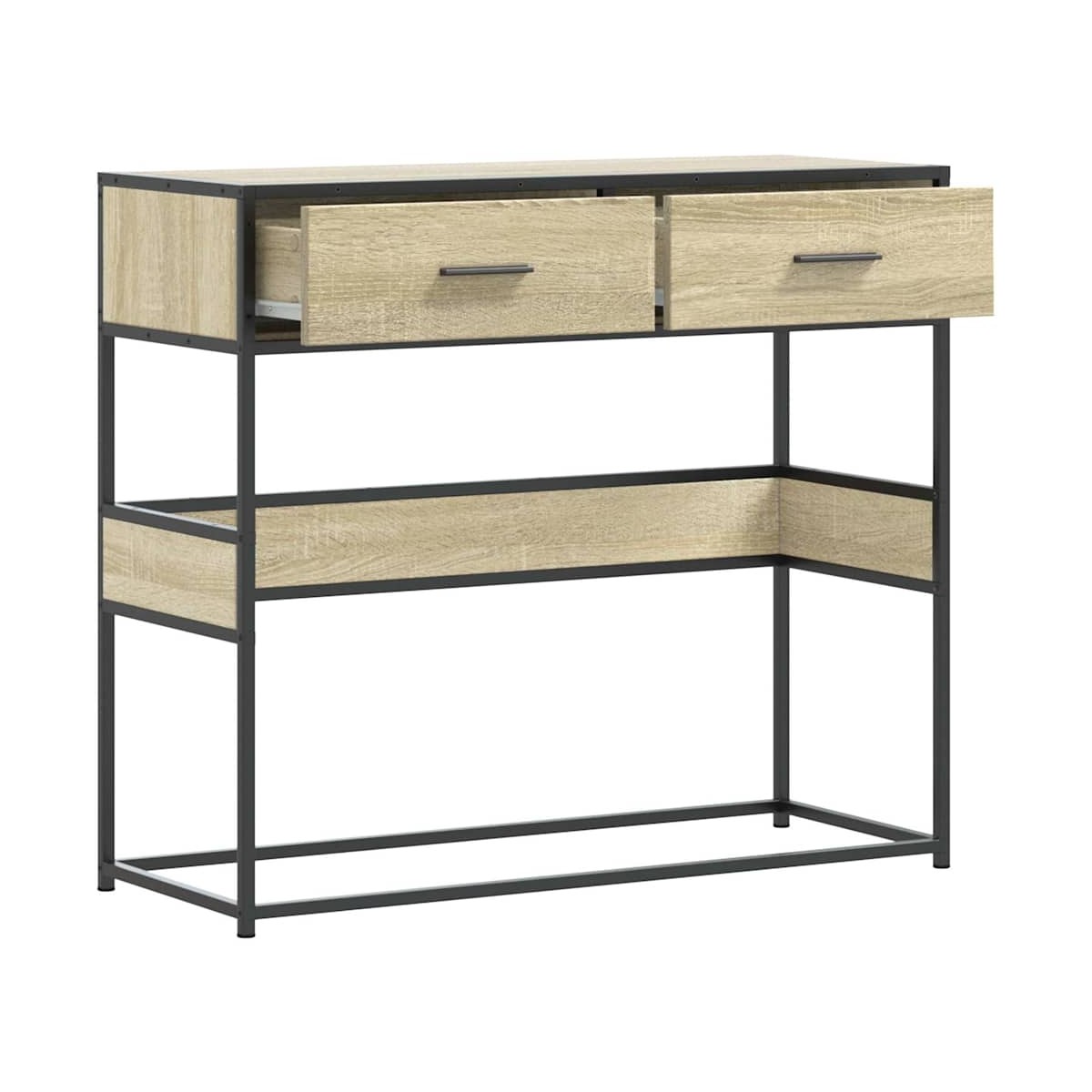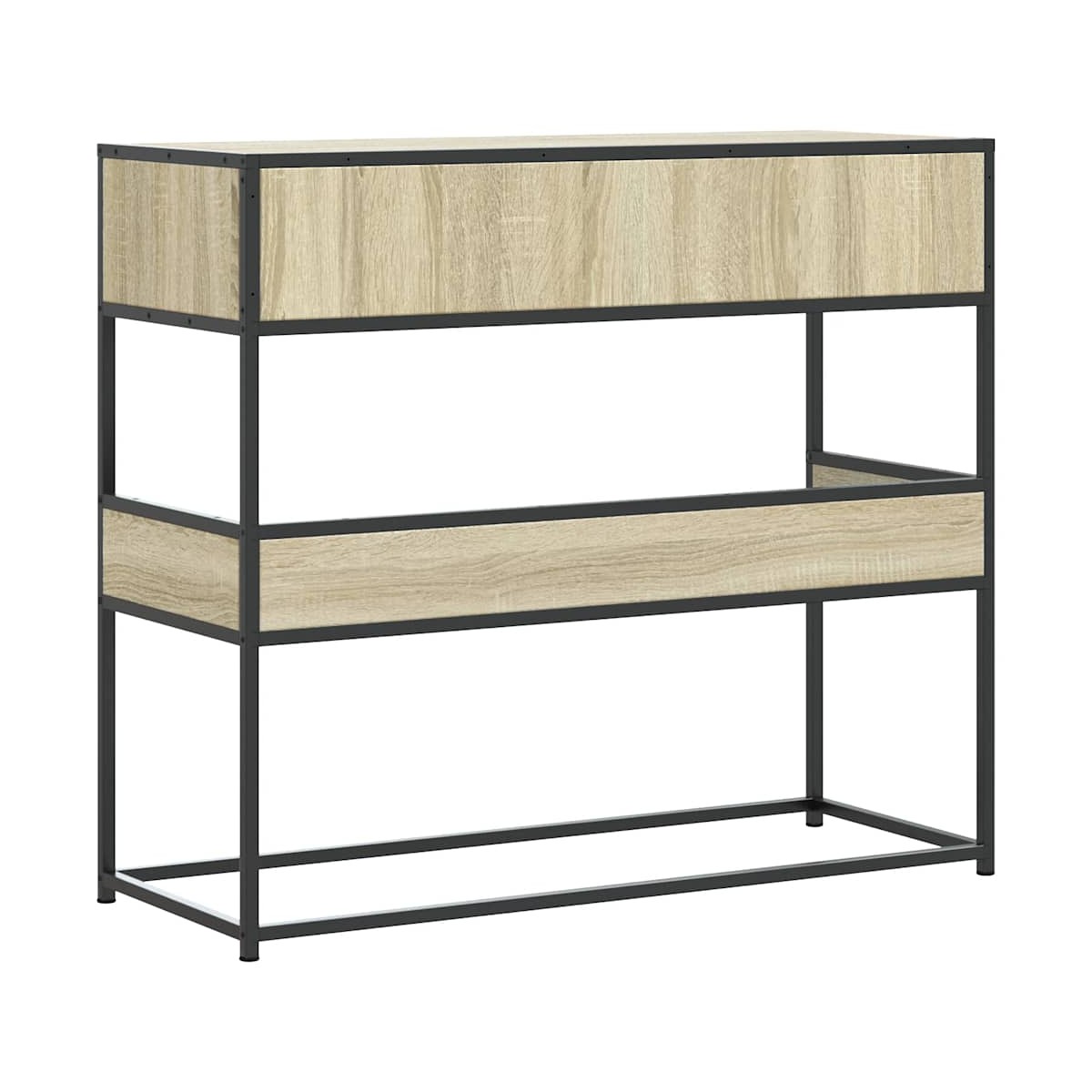 Esta mesa consola ofrece un amplio espacio de almacenamiento a la vez que complementa la decoración de su hogar. Es perfecta para el salón, el dormitorio y los pasillos. Material estable y duradero: La madera de ingeniería es un material duradero y estable con una superficie lisa que es resistente a la humedad, la deformación y la rotura, lo que la convierte en una opción fiable para una variedad de proyectos.Marco estable y duradero: el marco de metal de la mesa de sofá realza su interior con un estilo industrial y proporciona una durabilidad, estabilidad y resistencia excepcionales a la corrosión.Amplio espacio de almacenamiento: esta mesa de recibidor tiene cajones y estantes para brindar espacio de almacenamiento para mantener sus revistas, libros, controles remotos y otros artículos pequeños a su alcance.Tablero resistente: la mesa del recibidor tiene un tablero resistente, sobre el que puedes colocar comida o bebidas, o exhibir objetos decorativos como marcos de fotos o incluso plantas en macetas.Fácil de mantener: gracias a su superficie lisa, el perchero de pasillo es fácil de limpiar con un paño húmedo y requiere menos mantenimiento. Advertencia:Para evitar que vuelque, este producto debe usarse con el dispositivo de fijación a la pared suministrado.