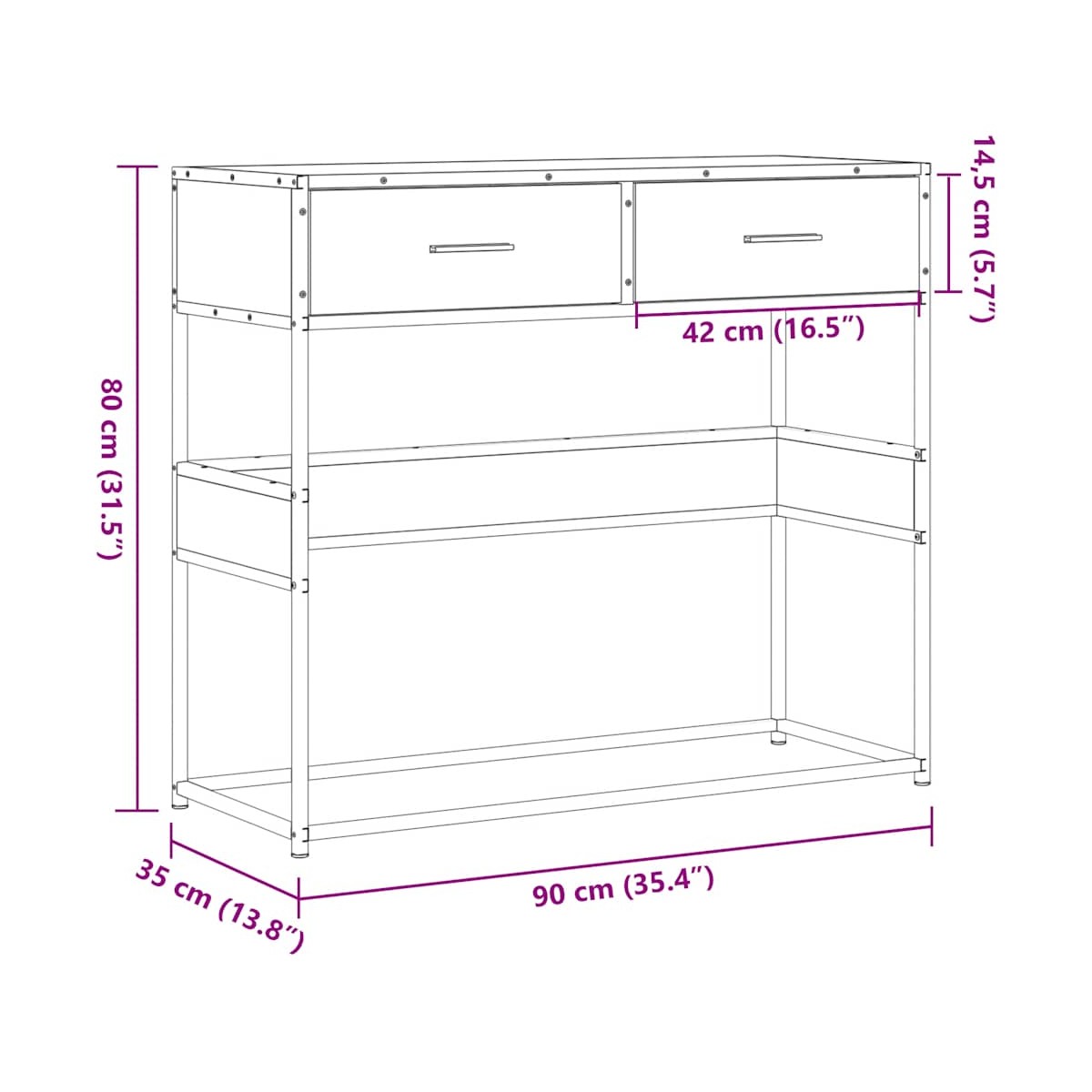 - Dimensiones: 90 x 35 x 80 cm (largo x ancho x alto)
