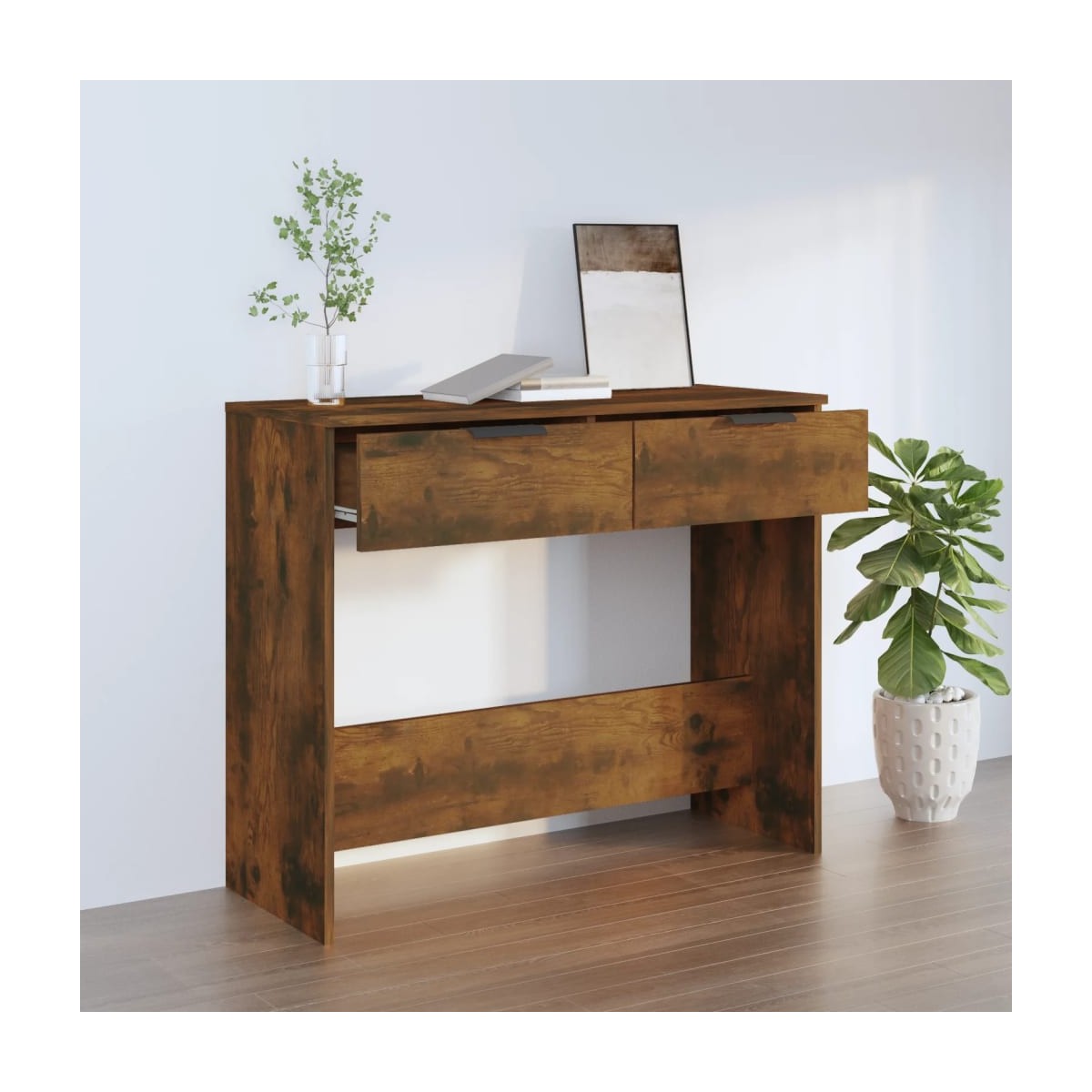 Esta aerodinámica mesa consola, con un diseño versátil, añade estilo y almacenaje al recibidor, salón o pasillo. Material estable: La madera contrachapada tiene una calidad excepcional, con una superficie lisa y también cuenta con fuerza, estabilidad y resistencia a la humedad.Espacio de almacenaje: La mesa de entrada está equipada con 2 cajones para guardar llaves, tarjetas, gafas, o algunas de las cosas que más uses cuando sales de casa.Superficie espaciosa: Esta mesa auxiliar cuenta con una espaciosa superficie que te proporciona la cantidad idónea de espacio para realzar tus cosas importantes, como adornos, un jarrón de flores, marcos de fotos, etc. Advertencia:Para evitar el vuelco, este producto debe usarse con el dispositivo provisto para fijarlo a la pared. Nota:Cada producto viene con un manual de montaje en la caja para facilitar el montaje.
