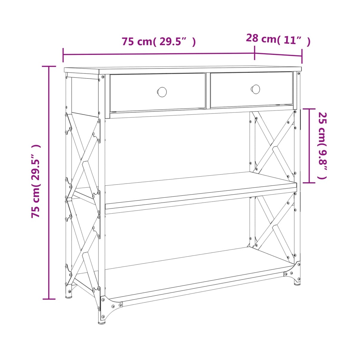 Añade un toque de elegancia a la entrada, el salón o el pasillo con esta elegante mesa consola. Material duradero: La madera de ingeniería tiene una calidad excepcional, con una superficie lisa, y también se caracteriza por su fuerza, estabilidad y resistencia a la humedad. Hecha de madera de ingeniería, la mesita de sofá es fácil de limpiar.Amplio espacio de almacenaje: La mesa de recibidor ofrece un amplio espacio de almacenaje para mantener bien organizados y al alcance revistas, libros, artículos decorativos y otros objetos de uso diario.Patas ajustables: Cuatro patas ajustables con almohadillas de plástico mantienen la mesa del pasillo equilibrada en terrenos irregulares y aumentan la estabilidad.Estructura de metal: La estructura metálica añade un estilo industrial a tu hogar a la vez que garantiza durabilidad y estabilidad. La mesa de entrada cuenta con travesaños en forma de X para una mayor estabilidad, por lo que no tienes que preocuparte de que se tambalee en el suelo. Advertencia:Para evitar que vuelque, este producto debe usarse con el dispositivo de fijación a la pared incluido.