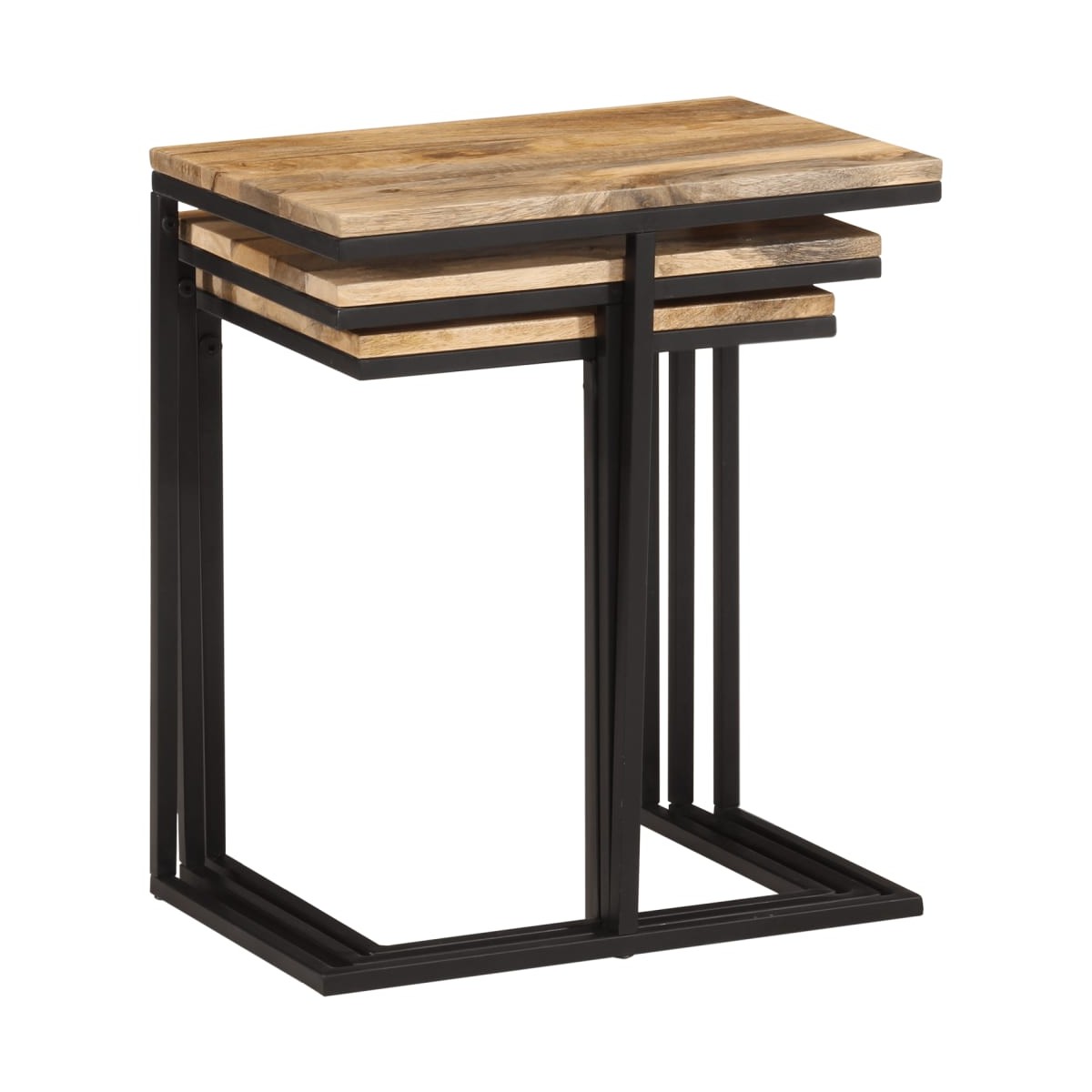 ¡Aporta un toque de elegancia a la decoración de tu hogar actual con estas exclusivas y elegantes mesas aplilables! Material duradero: La madera maciza de acacia es un hermoso material natural. La madera de acacia es una madera dura tropical, densa, robusta y duradera.Diseño apilable: Las mesas apilables tienen diferentes tamaños para cumplir con tus diferentes requisitos. La mesa más pequeña puede anidarse dentro de la mesa de centro más grande si necesitas más espacio. Y puedes organizarlas por separado para obtener el máximo espacio en la mesa.Función versátil: ¡Los soportes de anidación son versátiles! Cualquiera de ellas se puede utilizar como mesita de noche en el dormitorio, mesa auxiliar o mesa de sofá en el salón y la oficina.Superficie resistente: La resistente superficie del juego de mesas aplilables es ideal para dejar la bebida o cualquier otra cosa que necesites al alcance de la mano. Advertencia: Para evitar que vuelque, este producto debe usarse con el dispositivo de fijación a la pared suministrado.