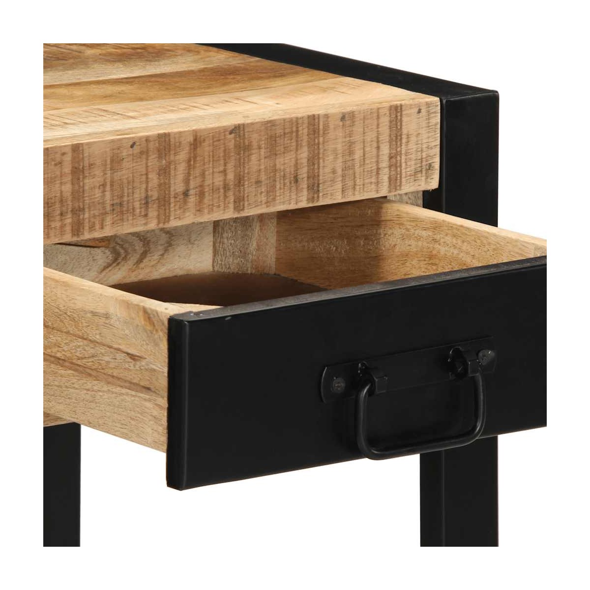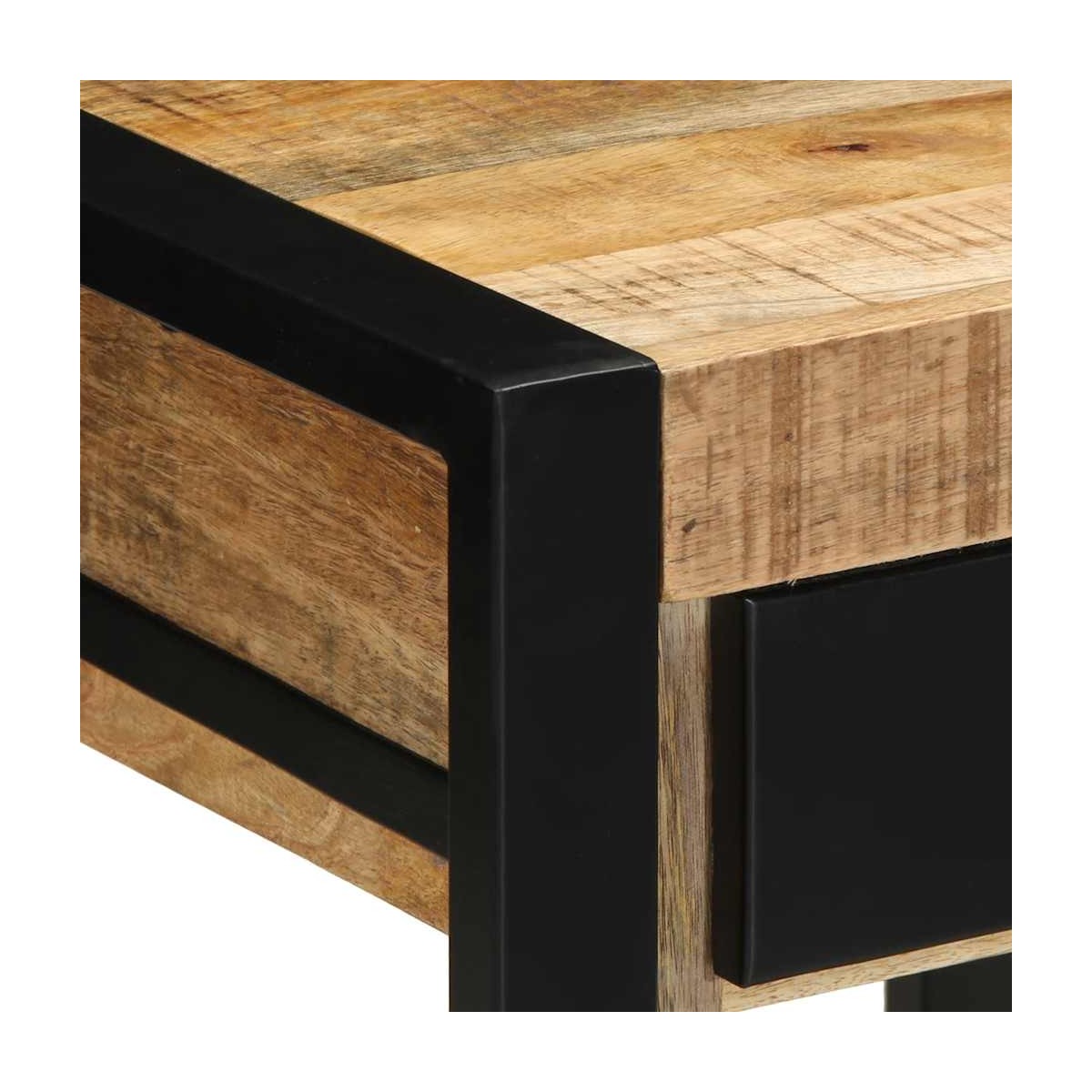 Esta mesa auxiliar está diseñada para ser el foco de atención en tu habitación con un diseño moderno y práctico. Material robusto y estable: La madera maciza de mango, una madera dura tropical robusta, es muy apreciada para la fabricación de muebles por su excepcional durabilidad y resistencia. Las bonitas vetas de la madera hacen que cada mueble sea ligeramente diferente al resto.Amplio espacio de almacenamiento: la mesa del recibidor tiene 1 cajón y 1 estante abierto, lo que proporciona suficiente espacio de almacenamiento para mantener varios elementos esenciales diarios organizados y al alcance de la mano.Tablero resistente: el tablero resistente de la mesa auxiliar es perfecto para colocar fotografías enmarcadas, plantas en macetas y otros elementos decorativos.Amplias aplicaciones: esta versátil mesa auxiliar puede servir como mesa auxiliar junto al sofá, mesita de noche, rincón de lectura, estación de té o aperitivos, plataforma de exposición o incluso como espacio de trabajo para ordenador portátil. Es perfecta para añadir funcionalidad a diversos espacios, como baños, pasillos, salas de estar, dormitorios, oficinas y mucho más. Información útil:Cada artículo es único, con variaciones de color y veta. La entrega es aleatoria garantizando la exclusividad y la individualidad del producto. Advertencia:Para evitar que vuelque, este producto debe usarse con el dispositivo de fijación a la pared suministrado.
