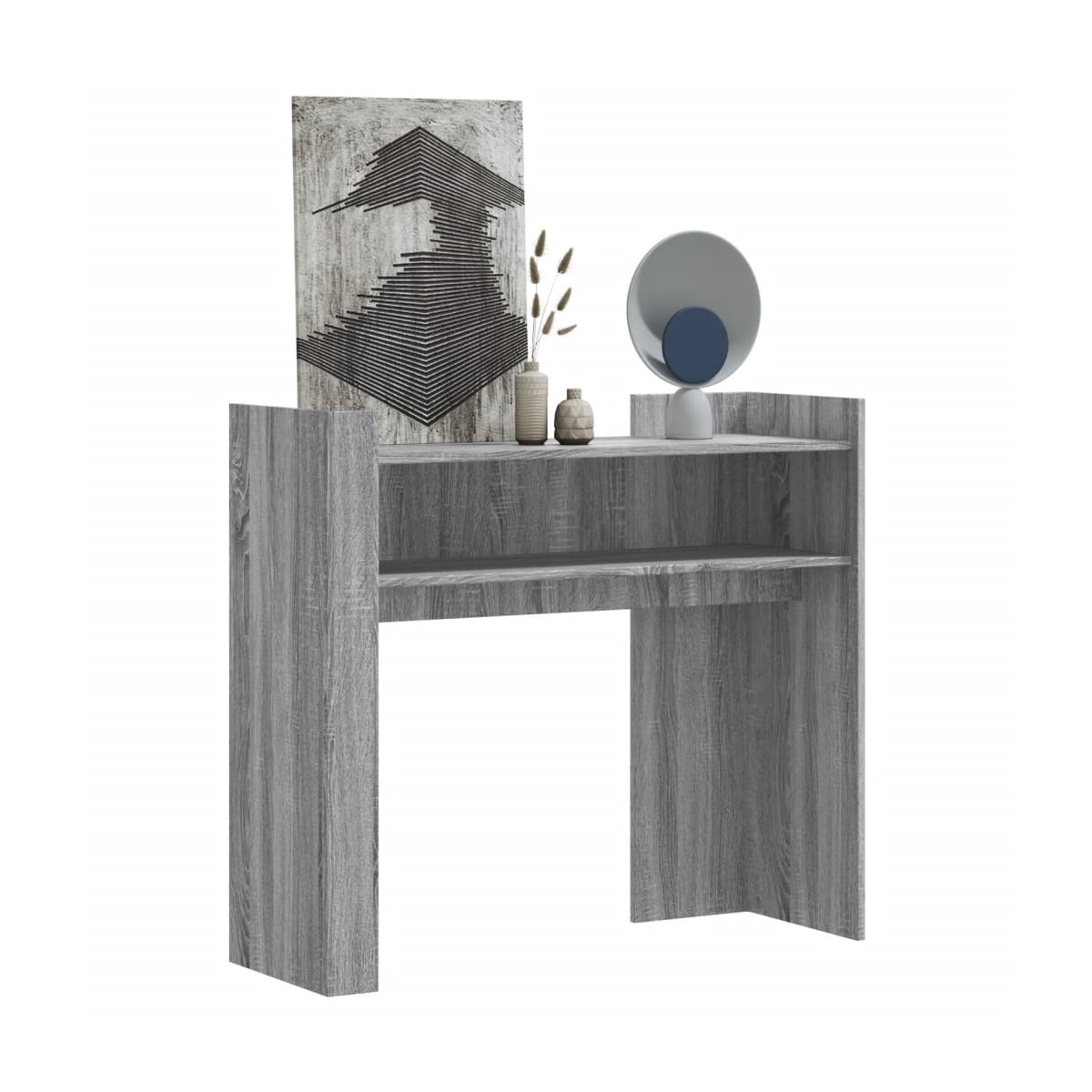 Esta clásica mesa consola será un complemento práctico y decorativo para la decoración de tu hogar. Material duradero: La madera de ingeniería tiene una calidad excepcional, con una superficie lisa y también cuenta con fuerza, estabilidad y resistencia a la humedad.Amplio espacio de almacenamiento: Esta práctica mesa consola cuenta con estantes, que ofrece un amplio espacio para colocar libros, plantas, cajas de almacenamiento, adornos, etc.Función expositora: También puedes colocar tus fotos favoritas, adornos o flores en la superficie de esta mesa consola para alegrarte la vida.Advertencia:Para evitar que vuelque, este producto debe usarse con el dispositivo de fijación a la pared suministrado.