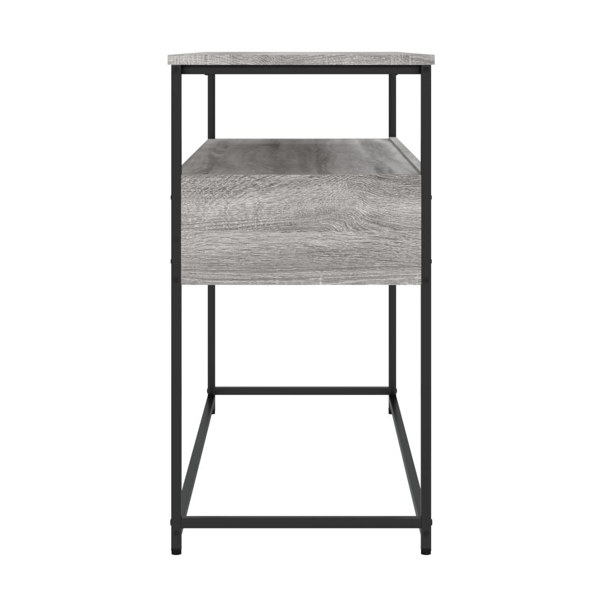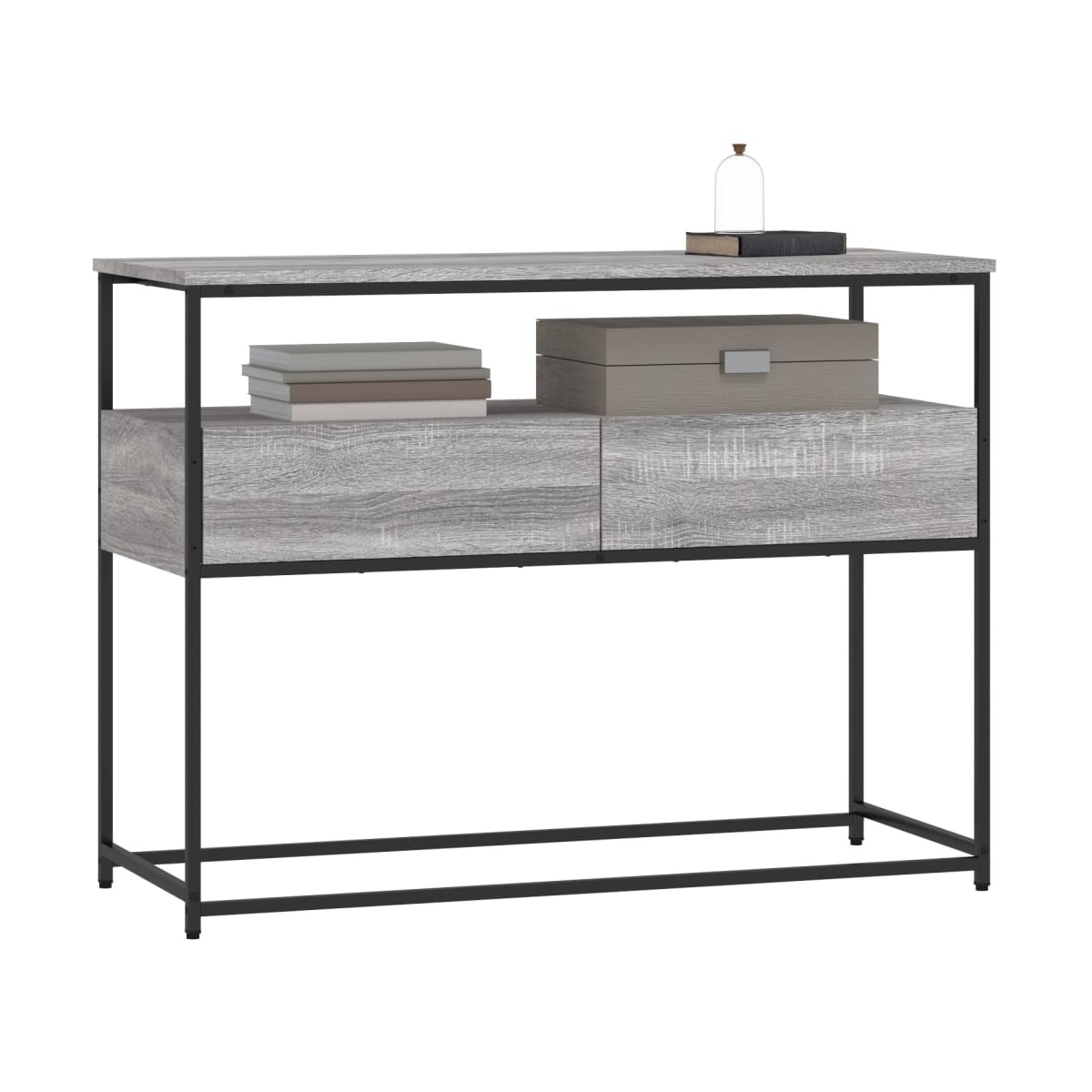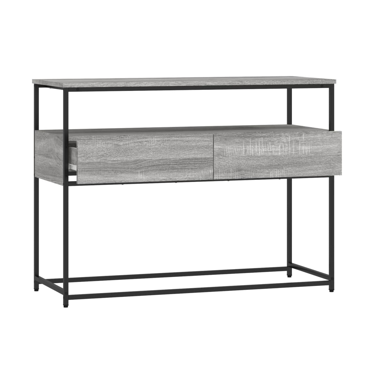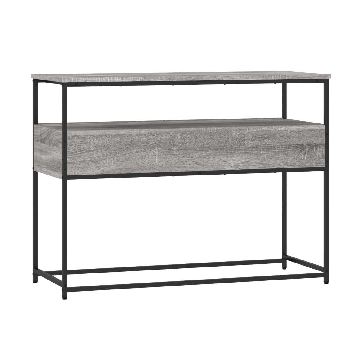 Añade un toque de elegancia a la entrada, el salón o el pasillo con esta elegante mesa consola. Material duradero: La madera de ingeniería tiene una calidad excepcional, con una superficie lisa, y también se caracteriza por su fuerza, estabilidad y resistencia a la humedad. Hecha de madera de ingeniería, la mesita de sofá es fácil de limpiar.Amplio espacio de almacenaje: La mesa de recibidor ofrece un amplio espacio de almacenaje para mantener bien organizados y al alcance revistas, libros, artículos decorativos y otros objetos de uso diario.Patas ajustables: Cuatro patas ajustables con almohadillas de plástico mantienen la mesa del pasillo equilibrada en terrenos irregulares y aumentan la estabilidad.Estructura metálica: La estructura metálica añade un estilo industrial a la casa, además de garantizar su durabilidad y estabilidad. Advertencia:Para evitar que vuelque, este producto debe usarse con el dispositivo de fijación a la pared incluido.