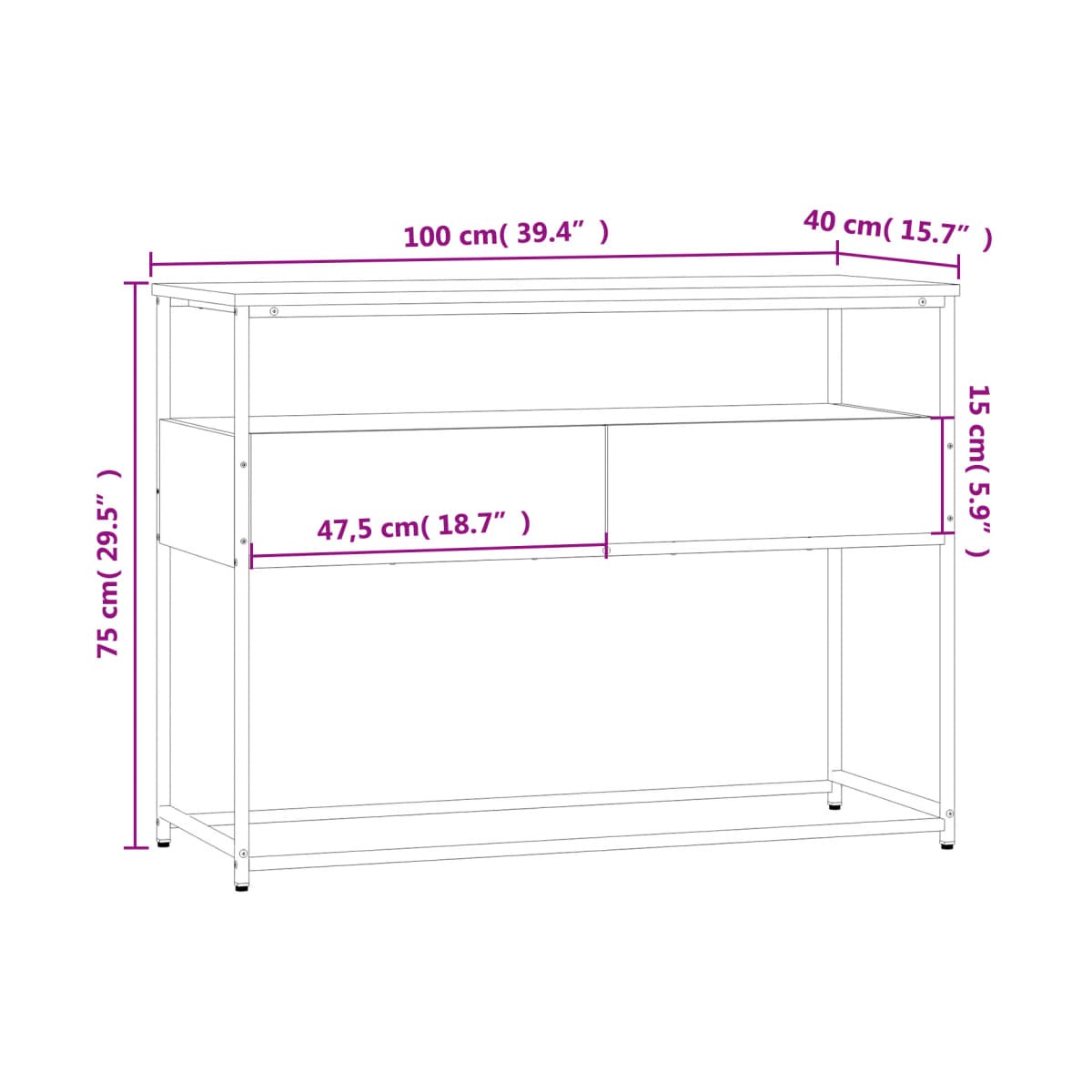 - Dimensiones: 100 x 40 x 75 cm (largo x ancho x alto)