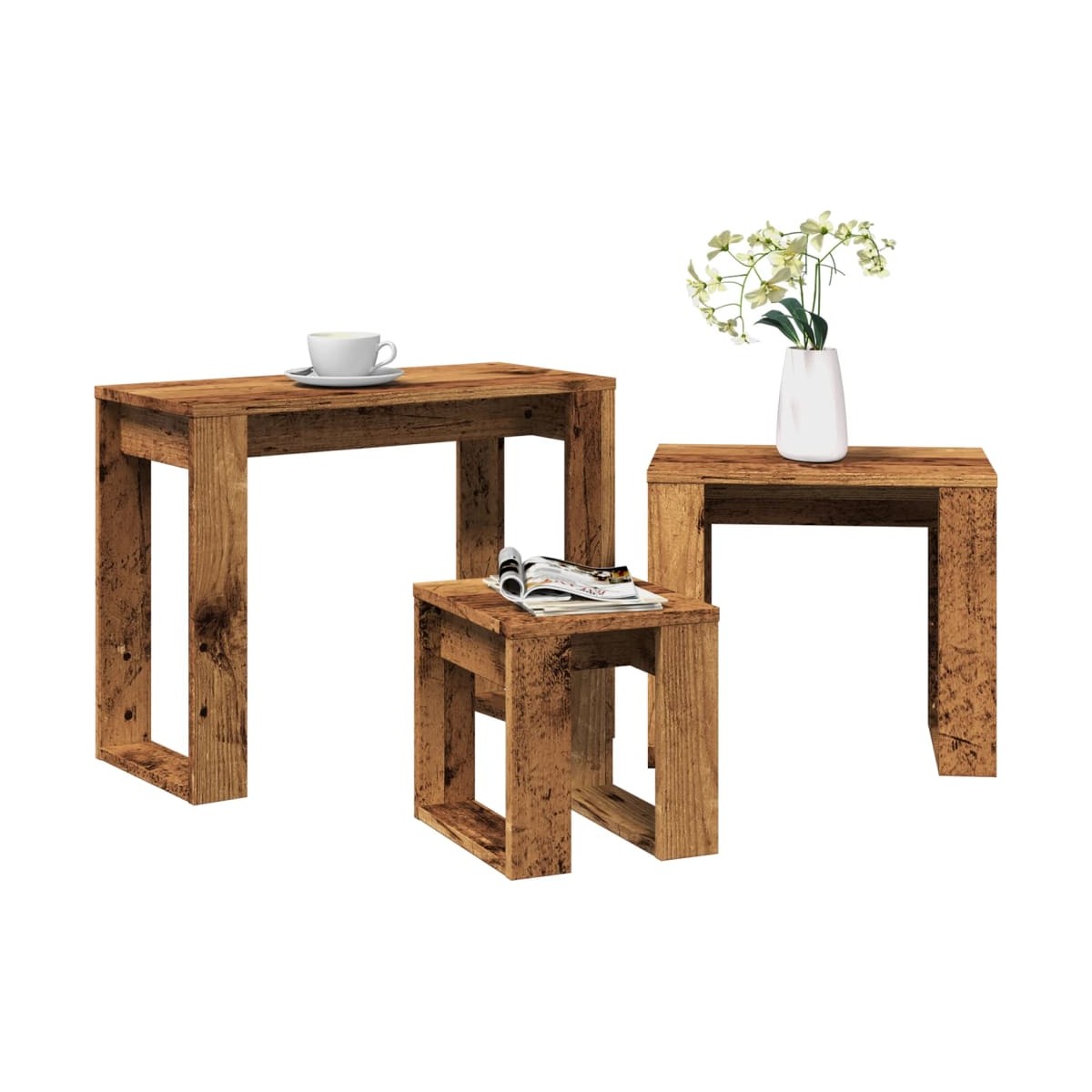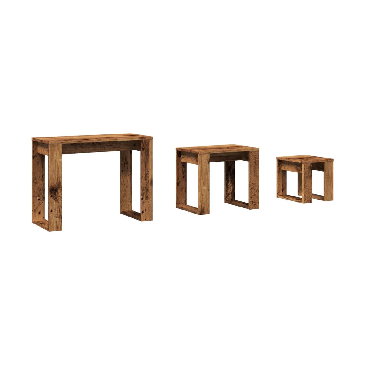 ¡Aporta un toque de elegancia a la decoración de tu hogar actual con estas exclusivas y elegantes mesas aplilables! Material estable y duradero: La madera de ingeniería es un material duradero y estable con una superficie lisa que es resistente a la humedad, la deformación y la rotura, lo que la convierte en una opción fiable para una variedad de proyectos.Diseño apilable: Las mesas apilables tienen diferentes tamaños para cumplir con tus diferentes requisitos. La mesa más pequeña puede anidarse dentro de la mesa de centro más grande si necesitas más espacio. Y puedes organizarlas por separado para obtener el máximo espacio en la mesa.Función versátil: ¡Los soportes de anidación son versátiles! Cualquiera de ellas se puede utilizar como mesita de noche en el dormitorio, mesa auxiliar o mesa de sofá en el salón y la oficina.Fácil de mantener: Gracias a su superficie lisa, el juego de mesas aplilables es fácil de limpiar con un paño húmedo y requiere menos mantenimiento.