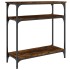 Añade un toque de elegancia a la entrada, el salón o el pasillo con esta elegante mesa consola. Material duradero: La madera de ingeniería tiene una calidad excepcional, con una superficie lisa, y también se caracteriza por su fuerza, estabilidad y resistencia a la humedad. Hecha de madera de ingeniería, la mesita de sofá es fácil de limpiar.Amplio espacio de almacenaje: La mesa de recibidor ofrece un amplio espacio de almacenaje para mantener bien organizados y al alcance revistas, libros, artículos decorativos y otros objetos de uso diario.Patas ajustables: Cuatro patas ajustables con almohadillas de plástico mantienen la mesa del pasillo equilibrada en terrenos irregulares y aumentan la estabilidad.Estructura metálica: La estructura metálica añade un estilo industrial a la casa, además de garantizar su durabilidad y estabilidad. Advertencia:Para evitar que vuelque, este producto debe usarse con el dispositivo de fijación a la pared incluido.