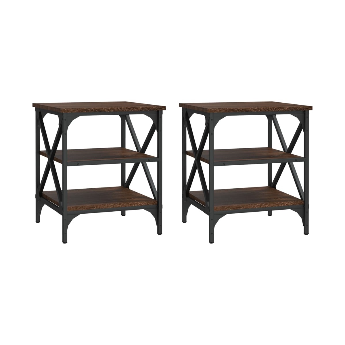 ¡Dale a tu salón un toque industrial único con estas elegantes mesas auxiliares! Material robusto: La madera contrachapada tiene una calidad excepcional, con una superficie lisa y también cuenta con fuerza, estabilidad y resistencia a la humedad.Función de almacenaje: La mesita de centro proporciona un amplio espacio para mantener bien organizados y al alcance revistas, libros, mandos a distancia y otros artículos pequeños.Tablero práctico: El tablero superior resistente es perfecto para colocar tus bebidas, comida y otros artículos decorativos.Estructura estable: La estructura de acero de la mesa garantiza su robustez y estabilidad.Patas regulables: Gracias a las patas ajustables, la mesita puede apoyarse en suelos irregulares sin dificultad. Advertencia:Para evitar el vuelco, este producto debe usarse con el dispositivo provisto para fijarlo a la pared. Nota:Cada producto viene con un manual de montaje en la caja para facilitar el montaje.